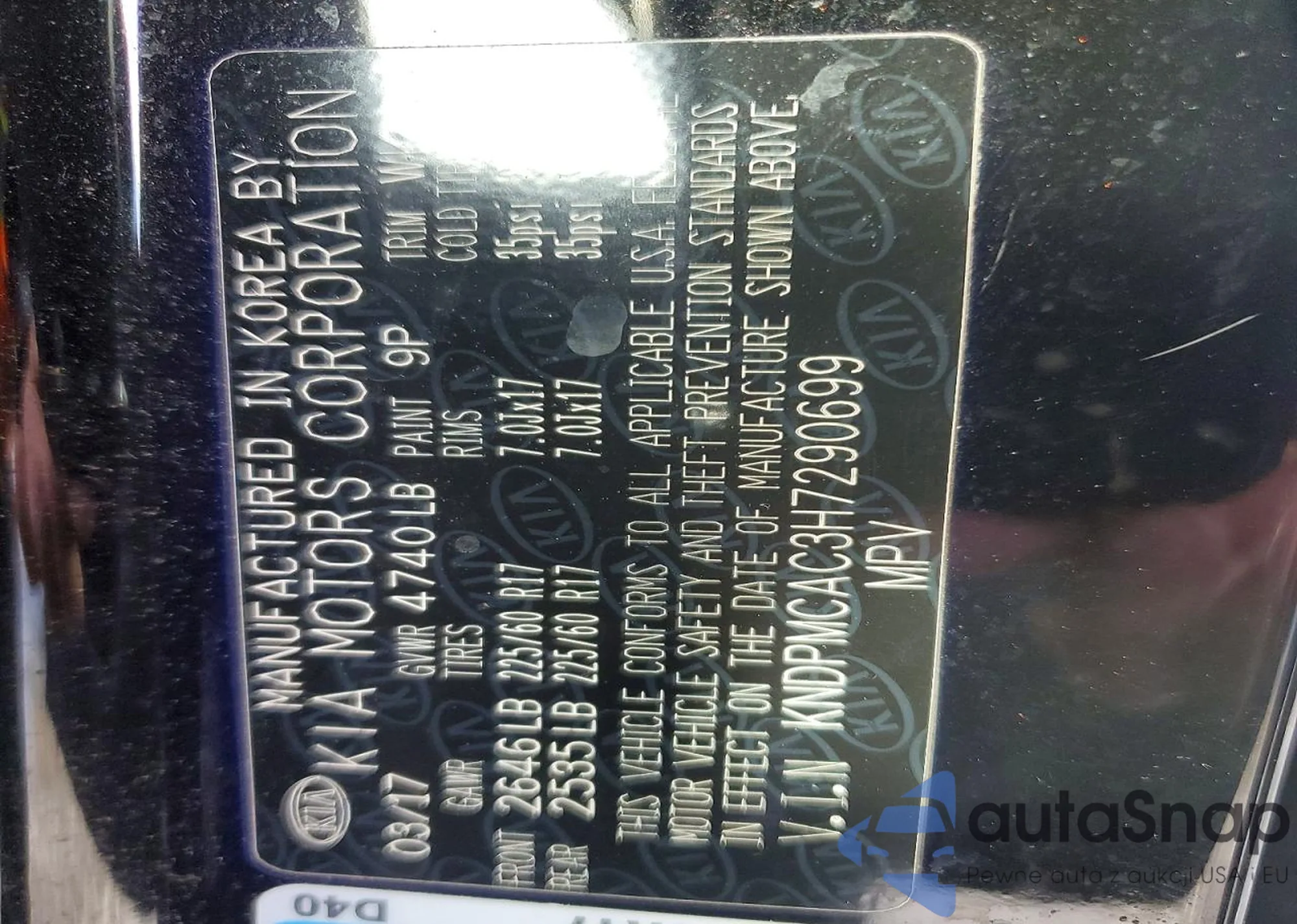 • VIN KNDPMCAC3H7290699