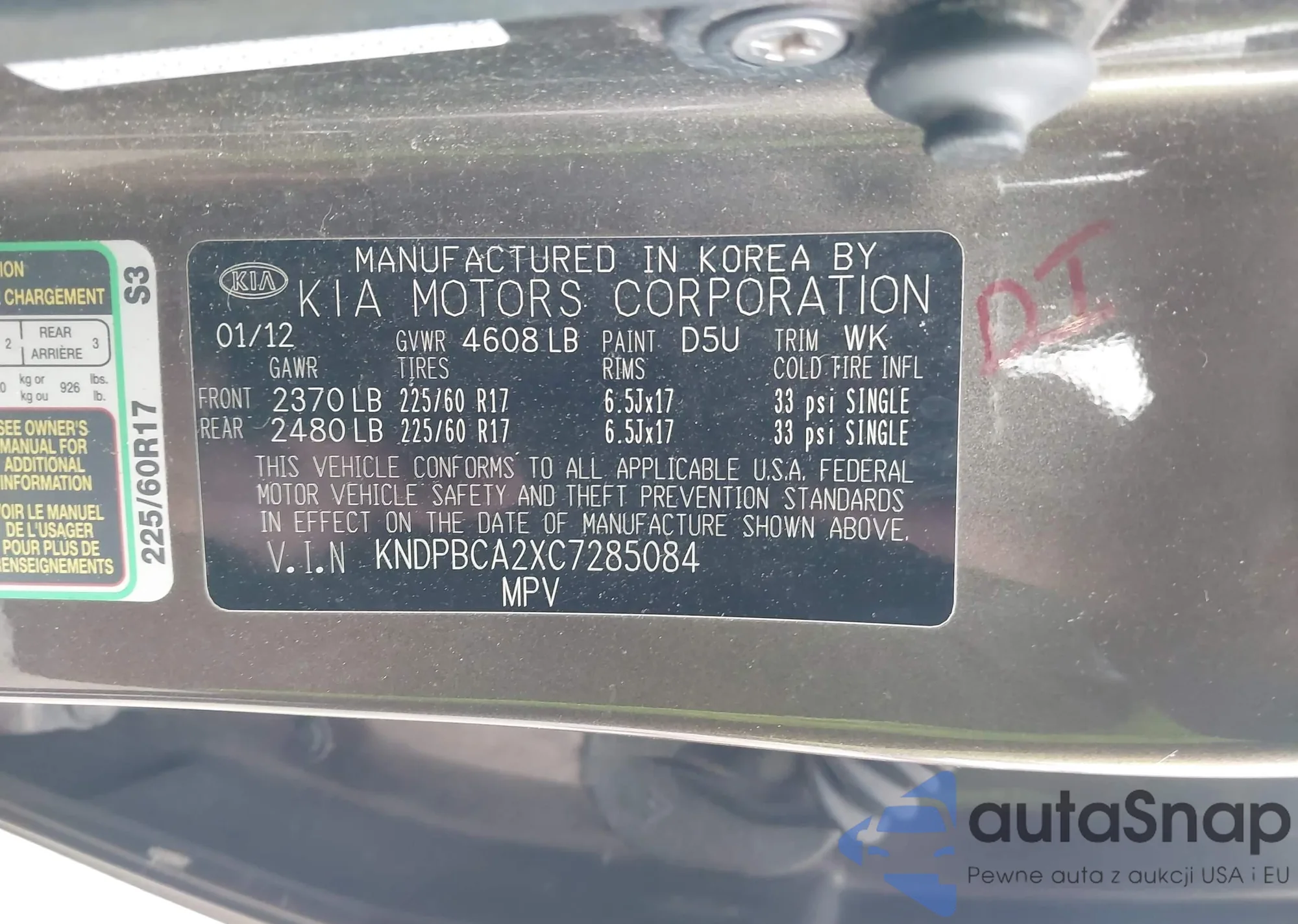 • VIN KNDPBCA2XC7285084