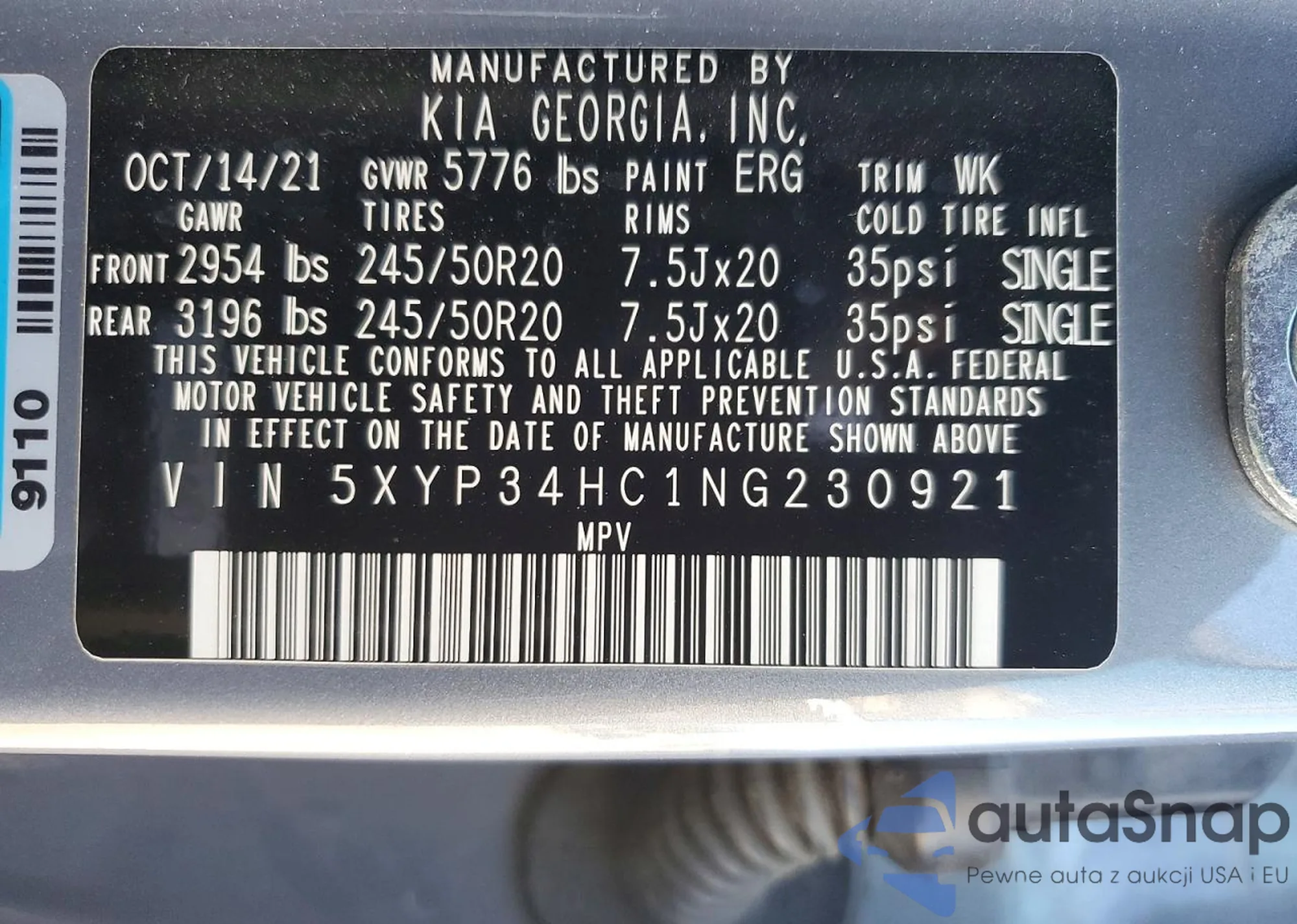 • VIN 5XYP34HC1NG230921