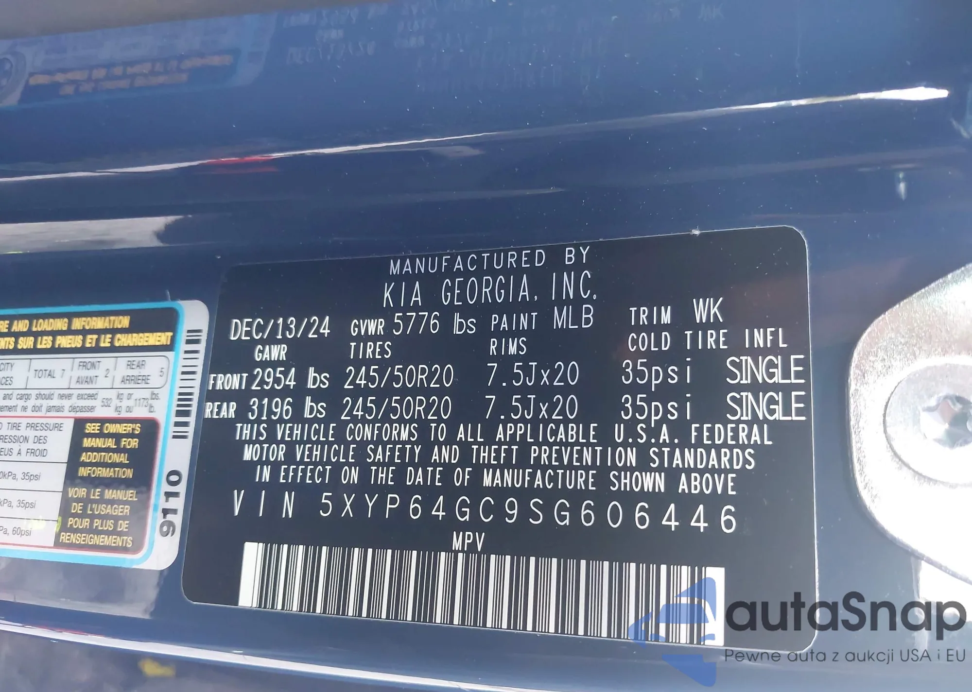 • VIN 5XYP64GC9SG606446