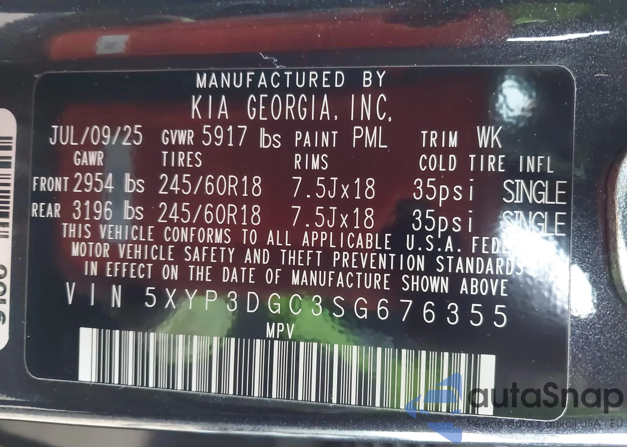 • VIN 5XYP3DGC3SG676355