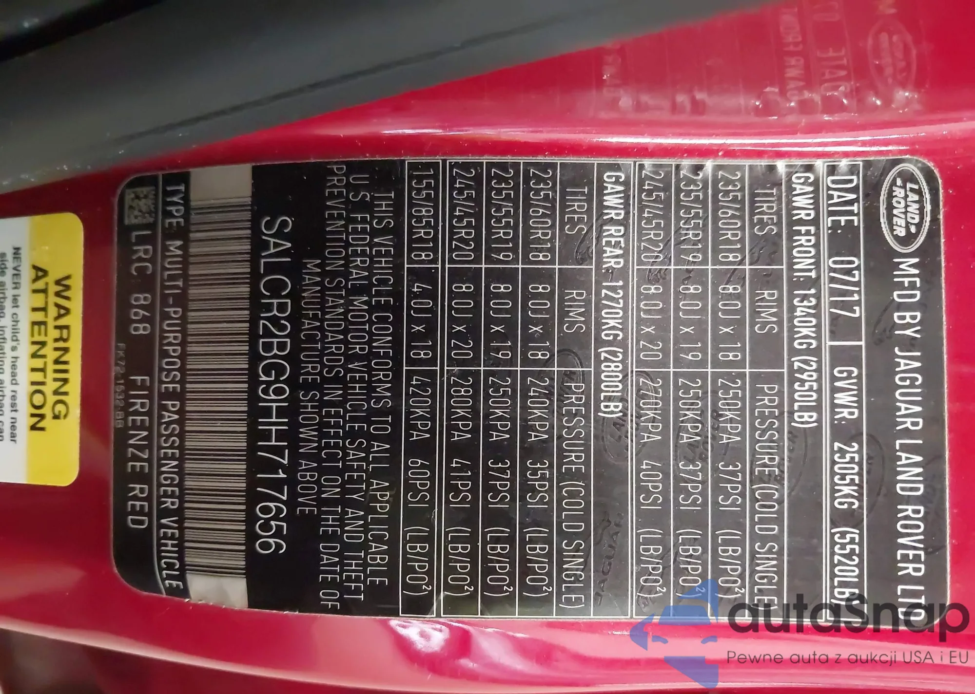 • VIN SALCR2BG9HH717656
