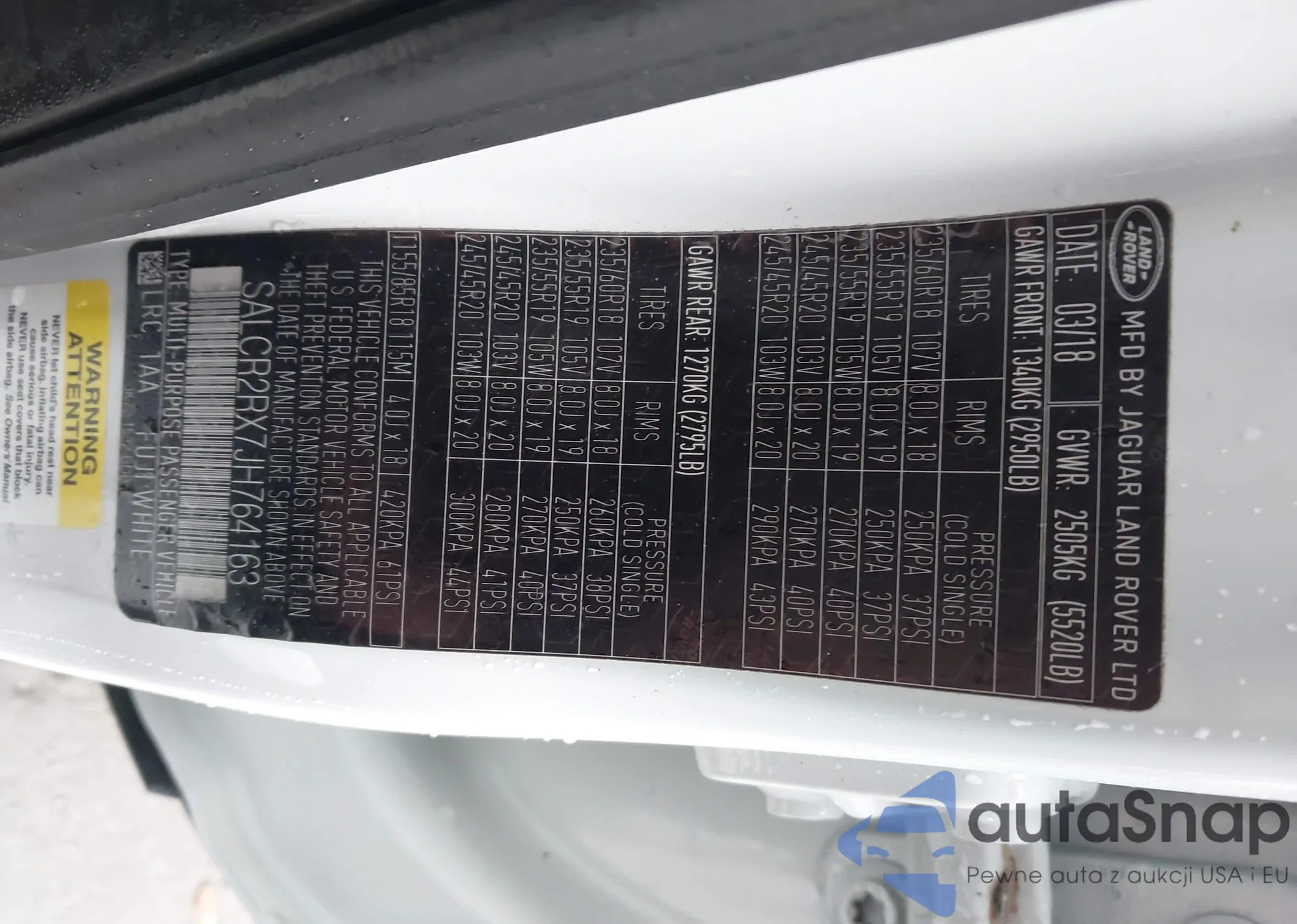 LOT: 44370004 VIN: SALCR2RX7JH764163