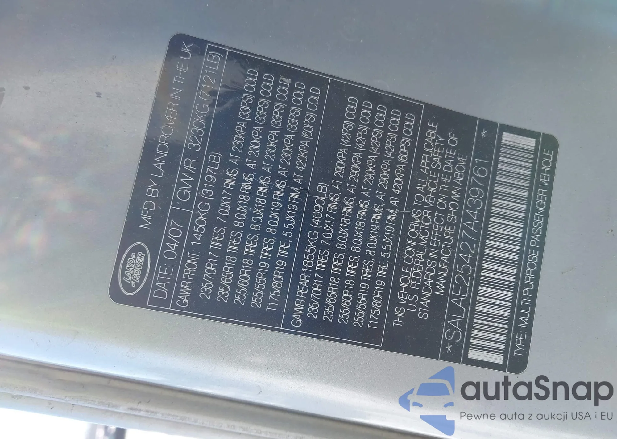 LOT: 44387547 VIN: SALAE25427A439761
