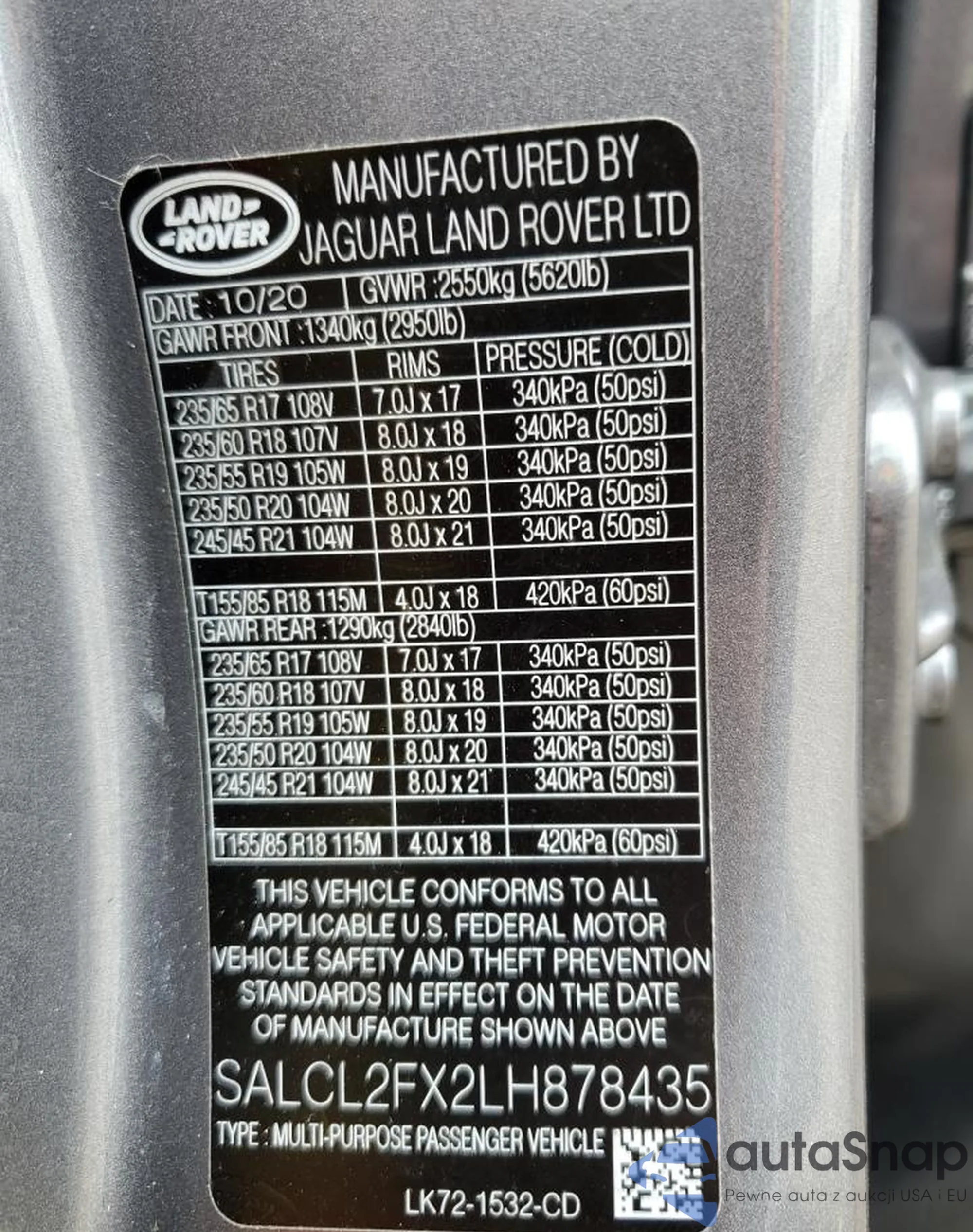 • VIN SALCJ2FX5MH902640