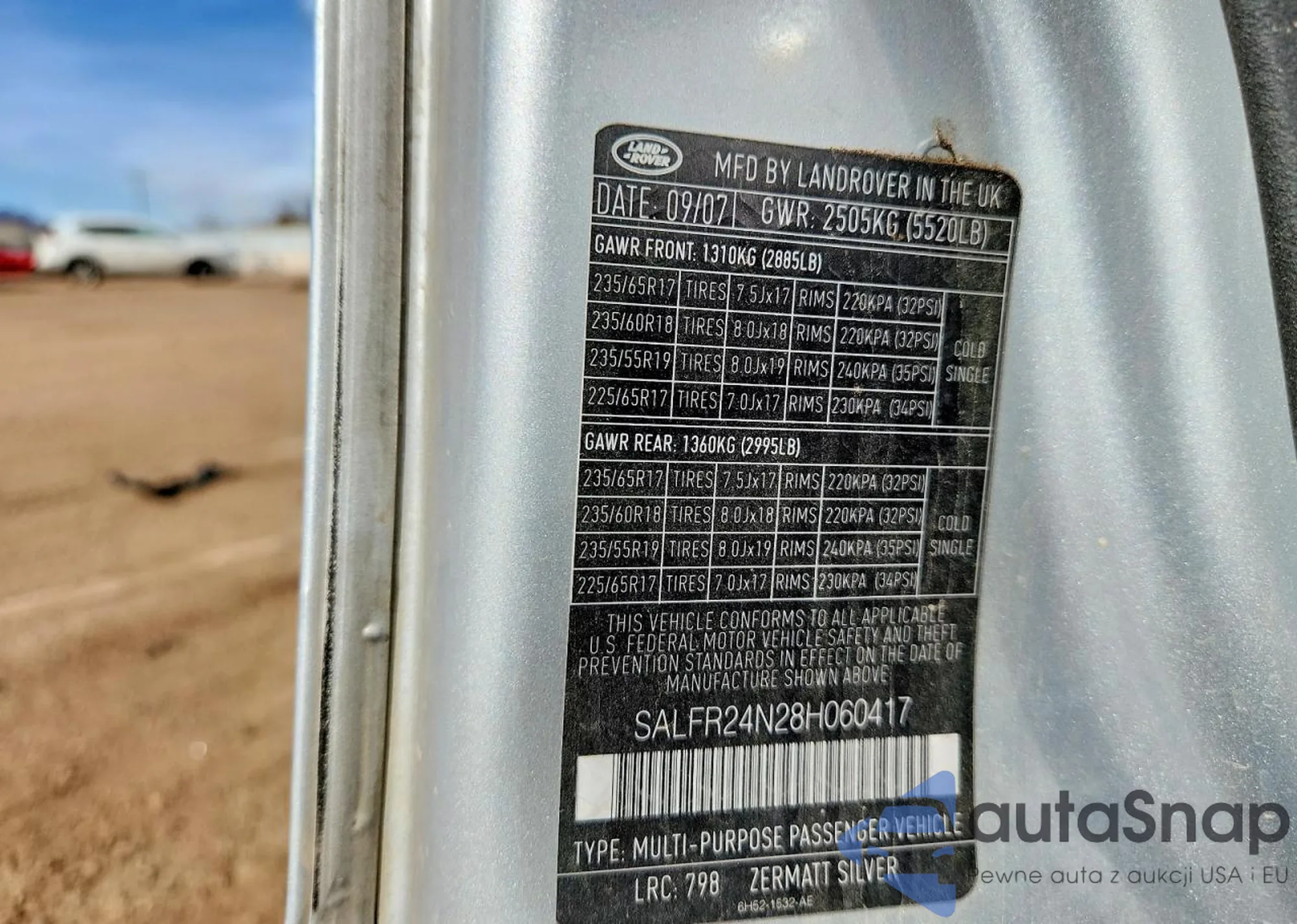 LOT: 77876115 VIN: SALFR24N28H060417