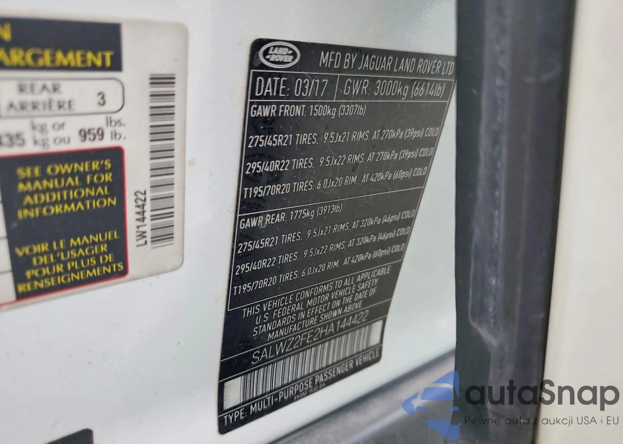 • VIN SALWZ2FE2HA144422