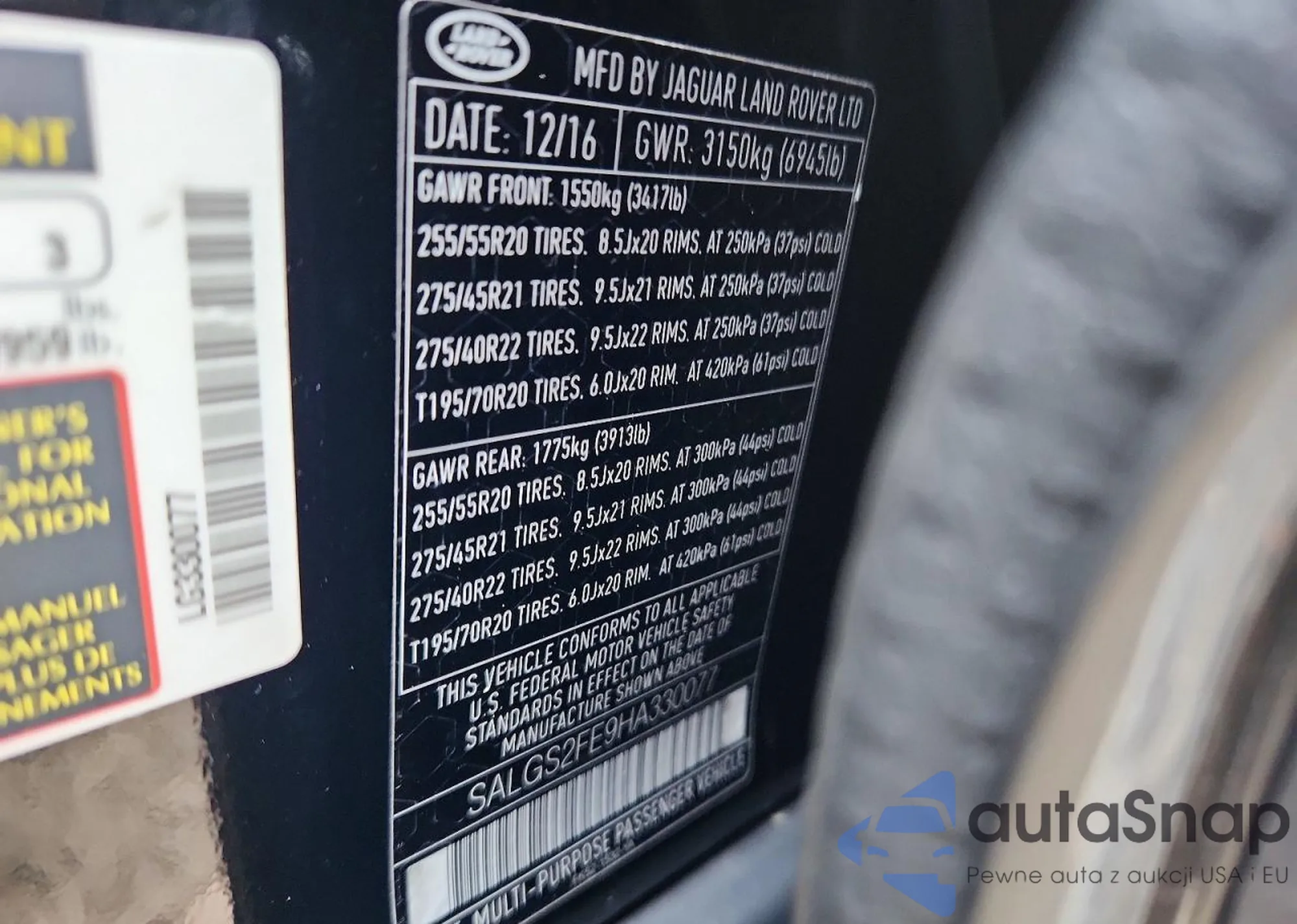 • VIN SALGS2FE9HA330077