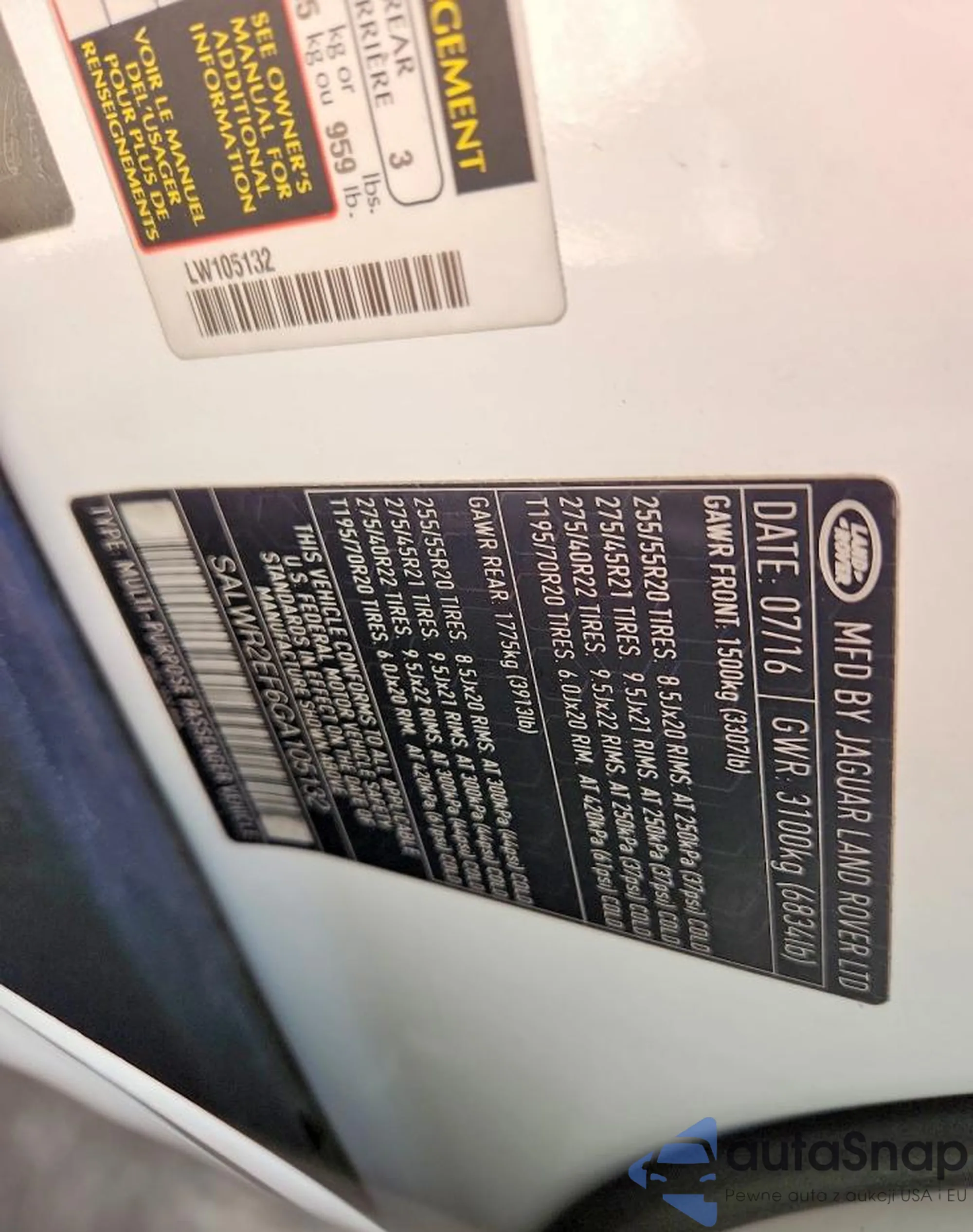 • VIN SALWR2EF6GA105132