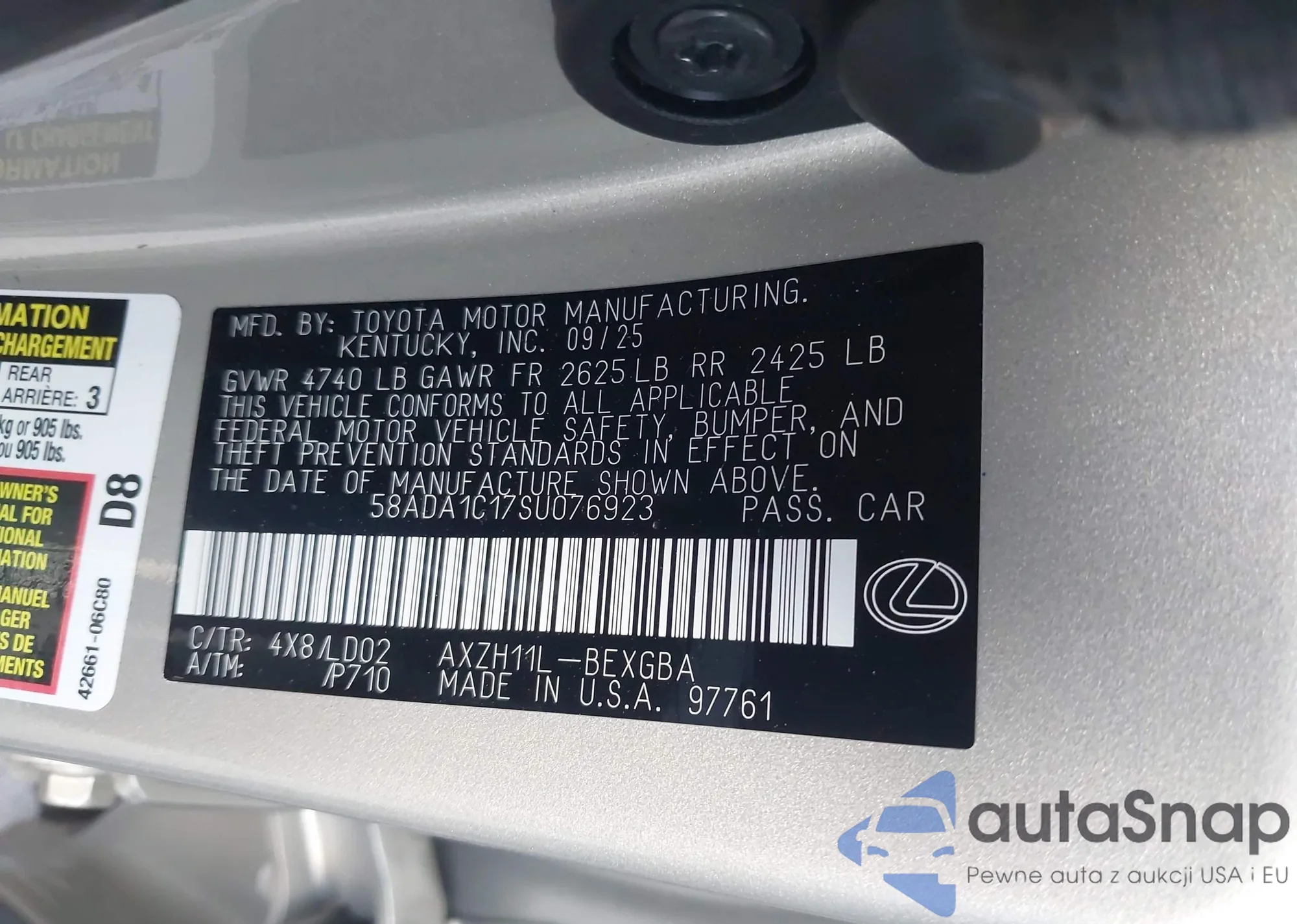LOT: 44120942 VIN: JTHBA30G745024730