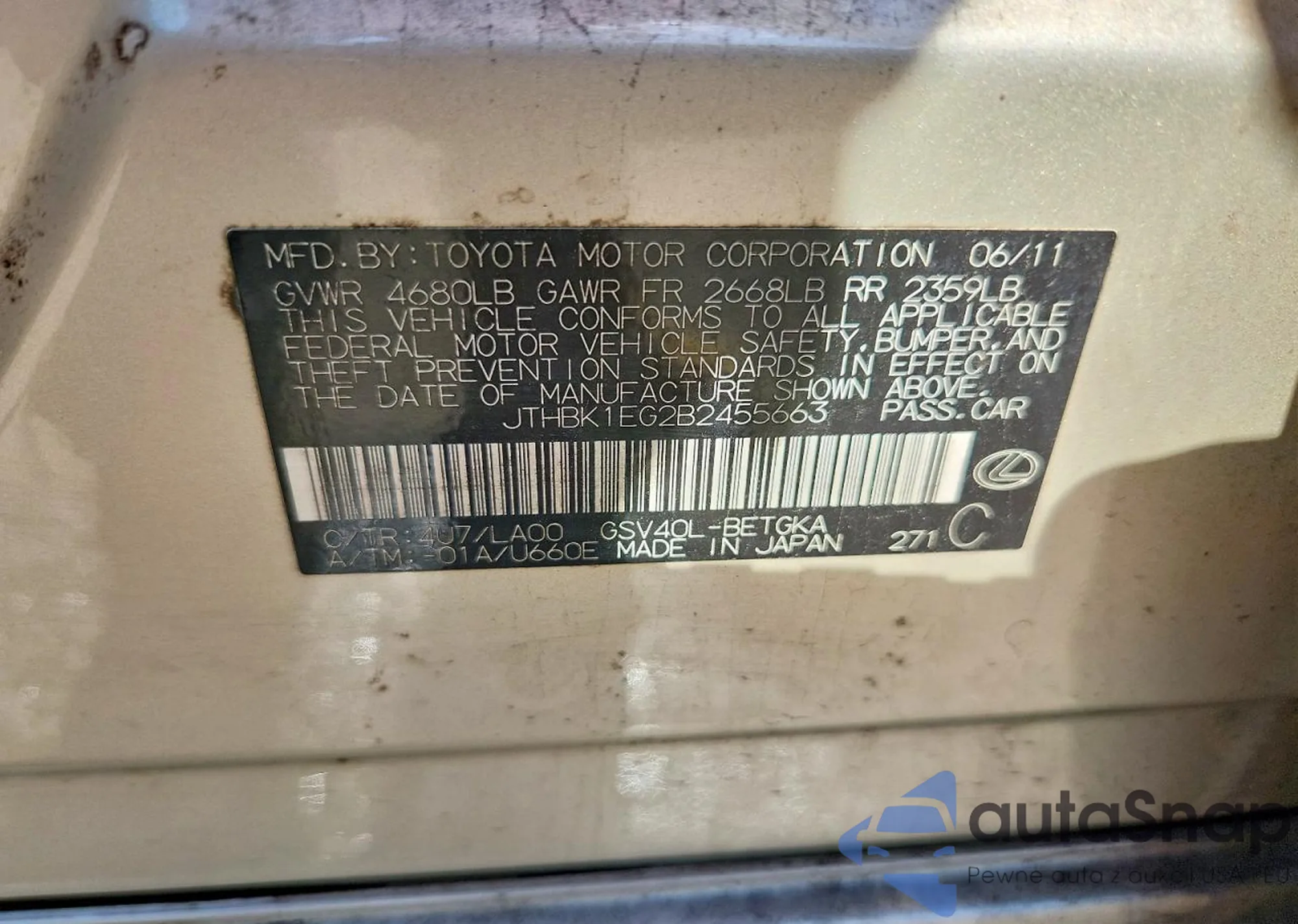 LOT: 76359555 VIN: JTHBK1EG2B2455663