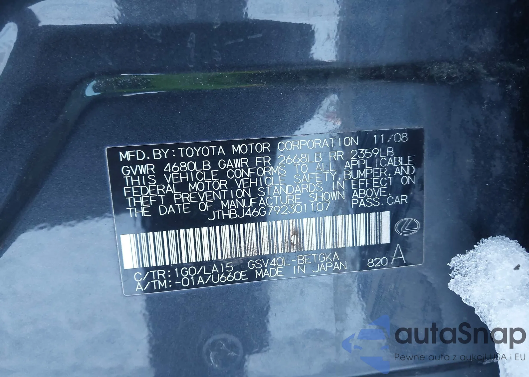 LOT: 74485205 VIN: JTHBJ46G792338030