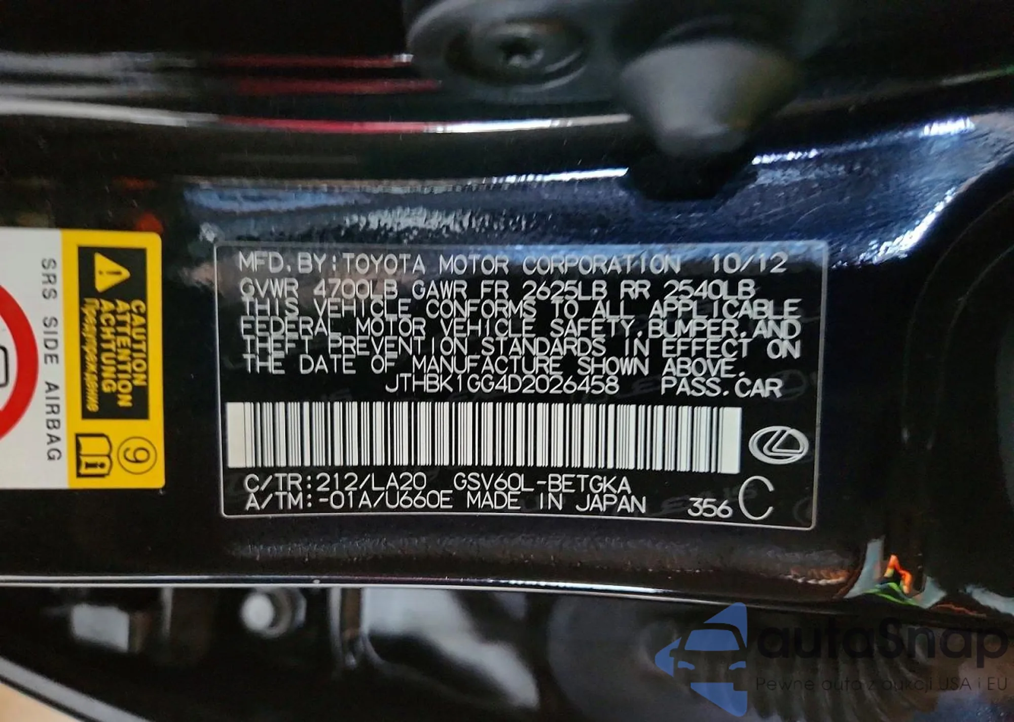 LOT: 76125905 VIN: JTHBK1GG3D2028038