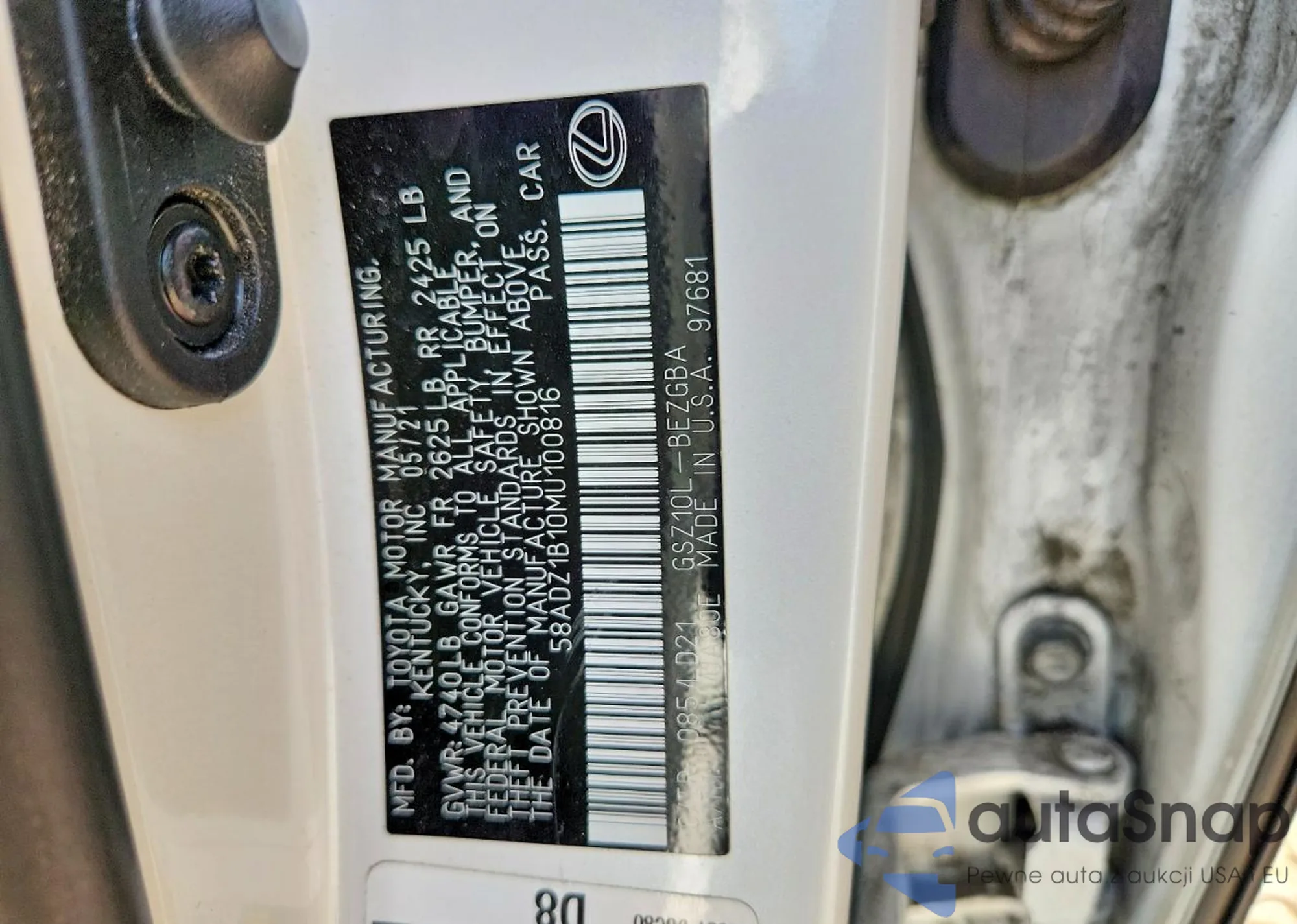 LOT: 43015573 VIN: 58ACZ1B14MU086561