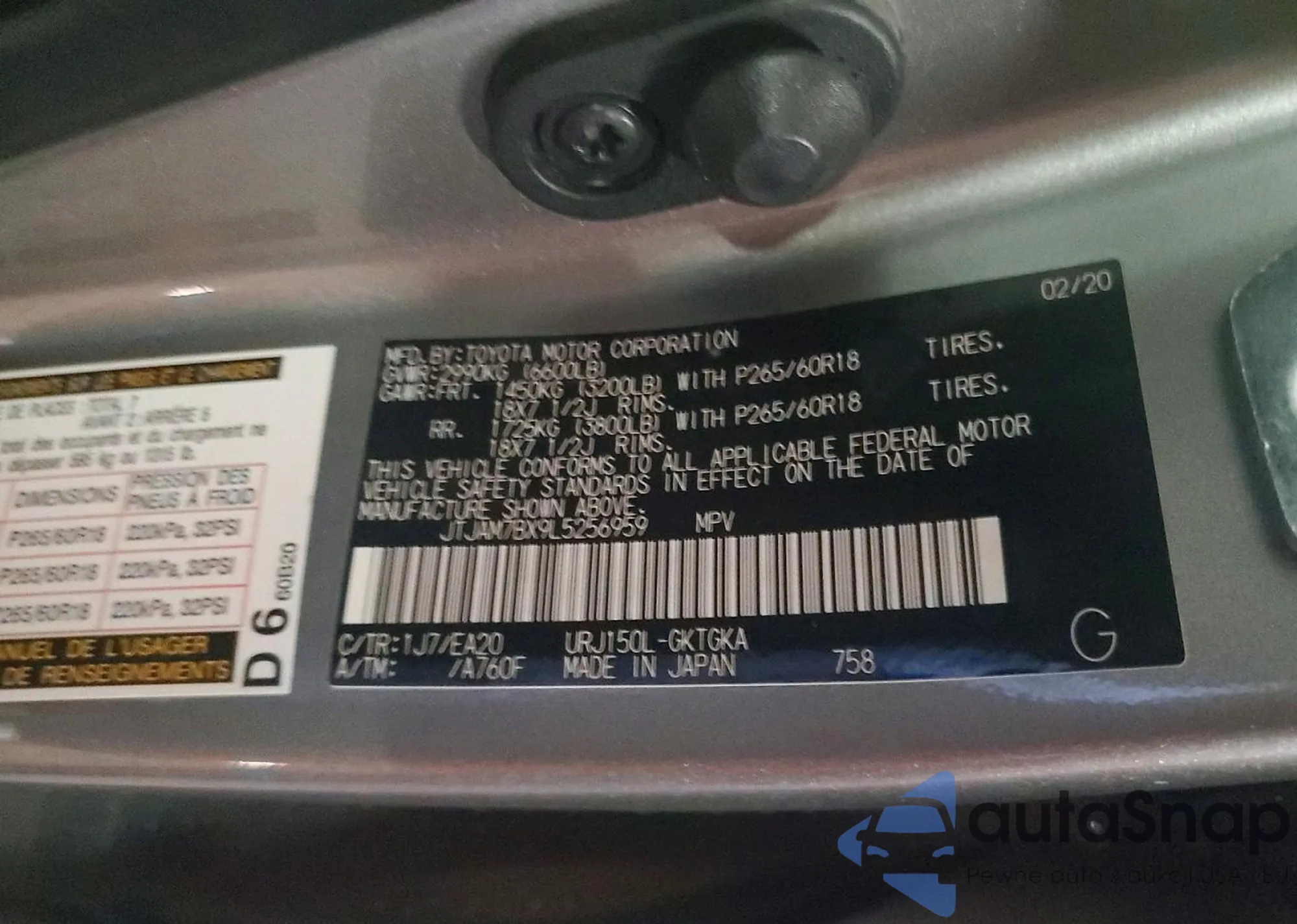 • VIN JTJAM7BXXL5246022