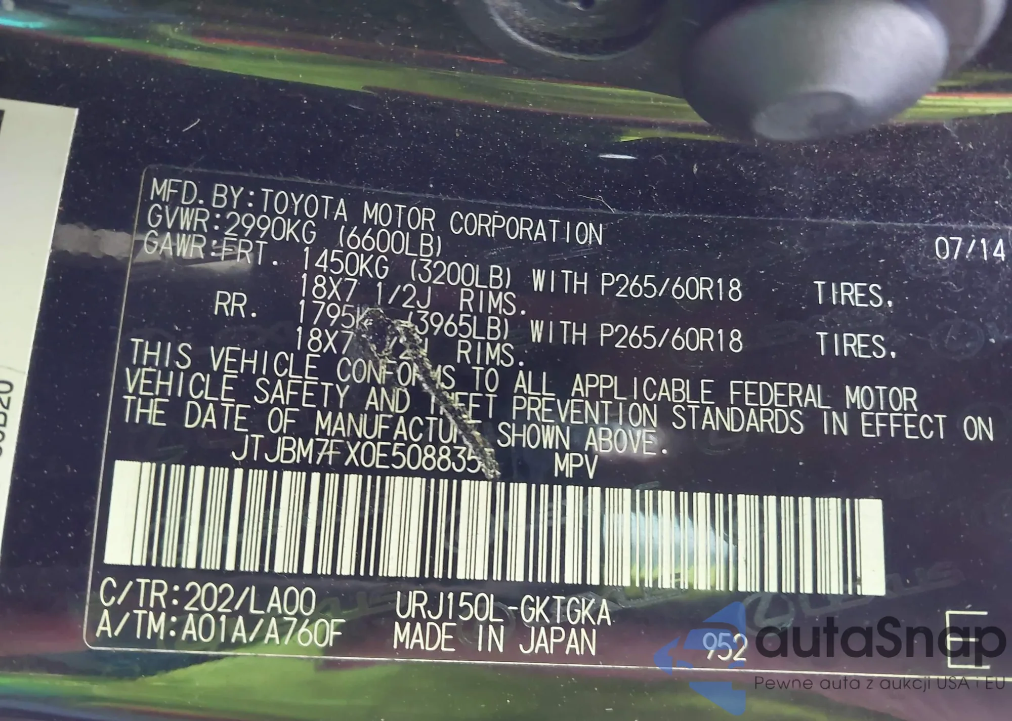 • VIN JTJBM7FX1E5074206