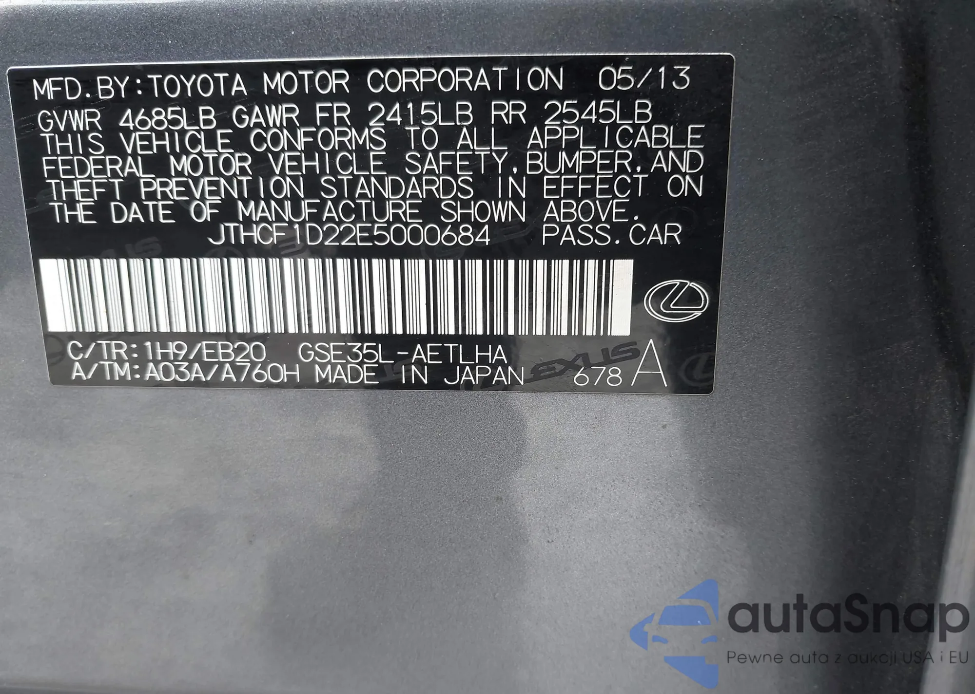 Kup Lexus IS III z USA