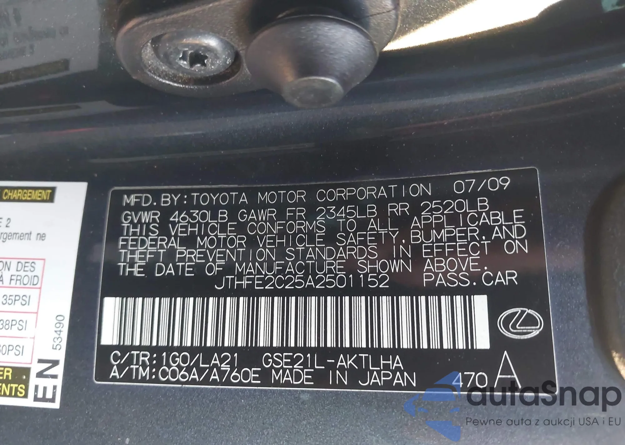 LOT: 44123254 VIN: JTHFE2C25A2501152