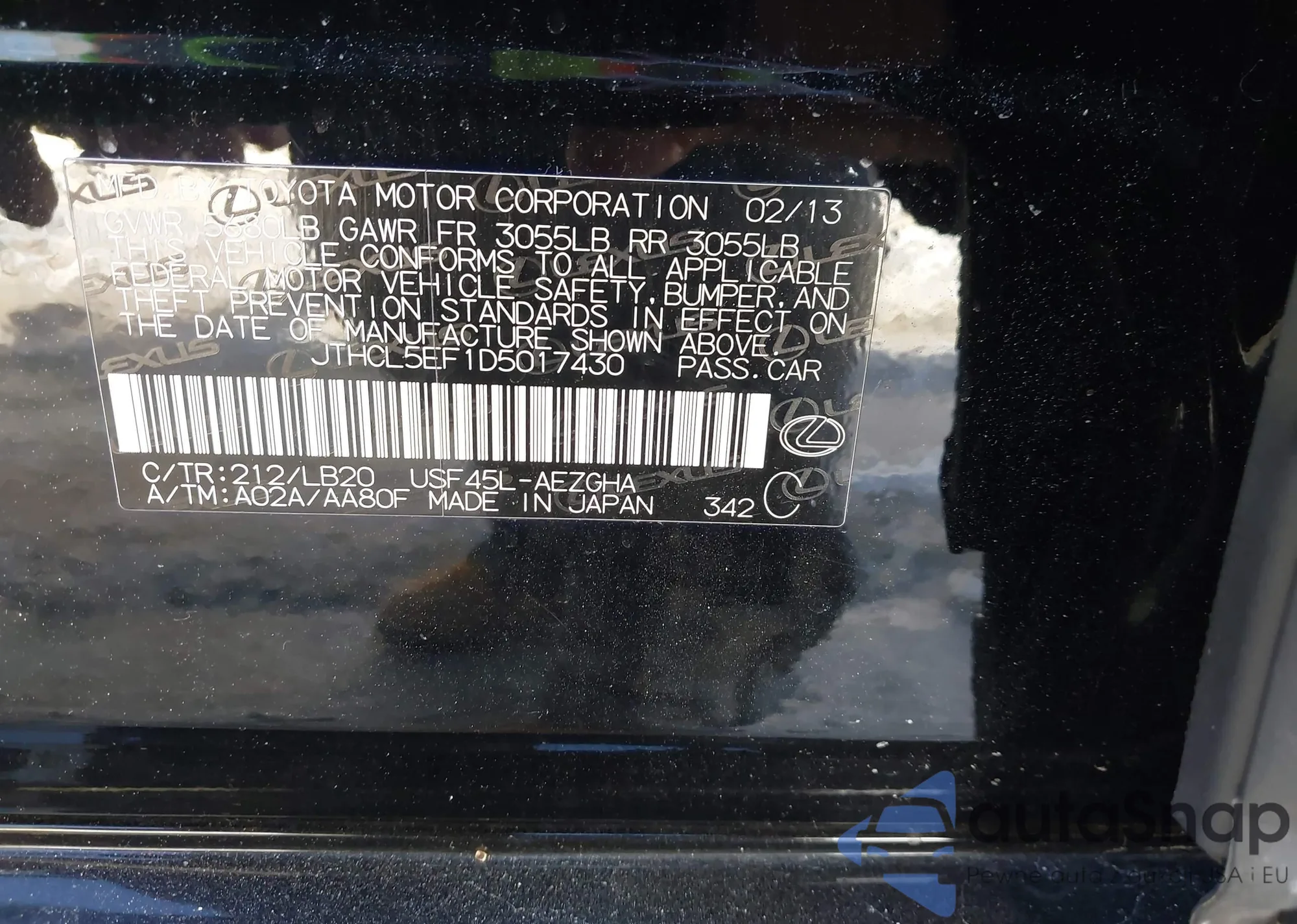 LOT: 61179725 VIN: JTHCL5EF7D5018002