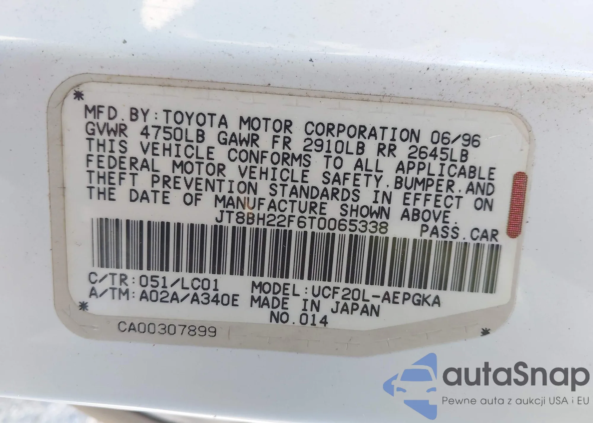 • VIN JT8BH22F6T0065338
