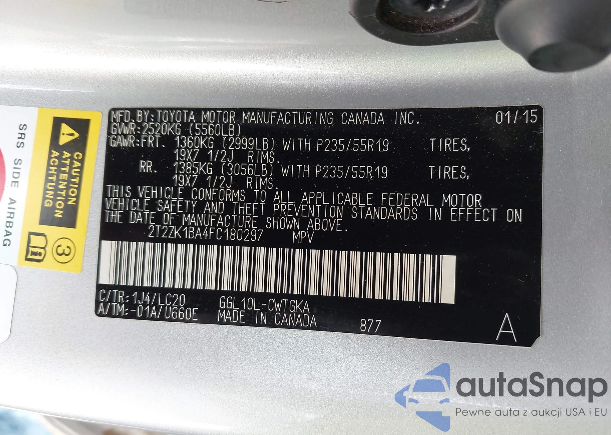 • VIN 2T2ZK1BA4FC180297