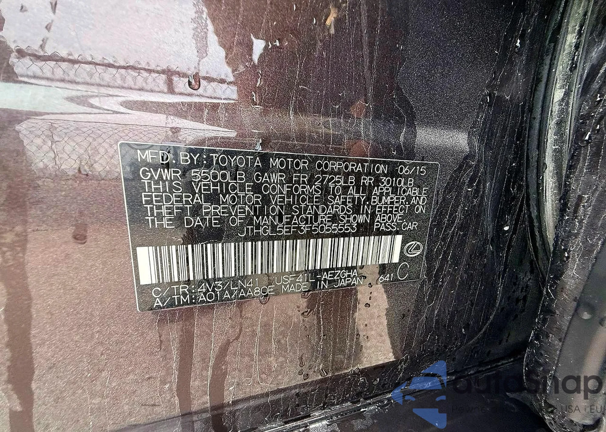 LOT: 78083955 VIN: JTHGL5EF3F5055553