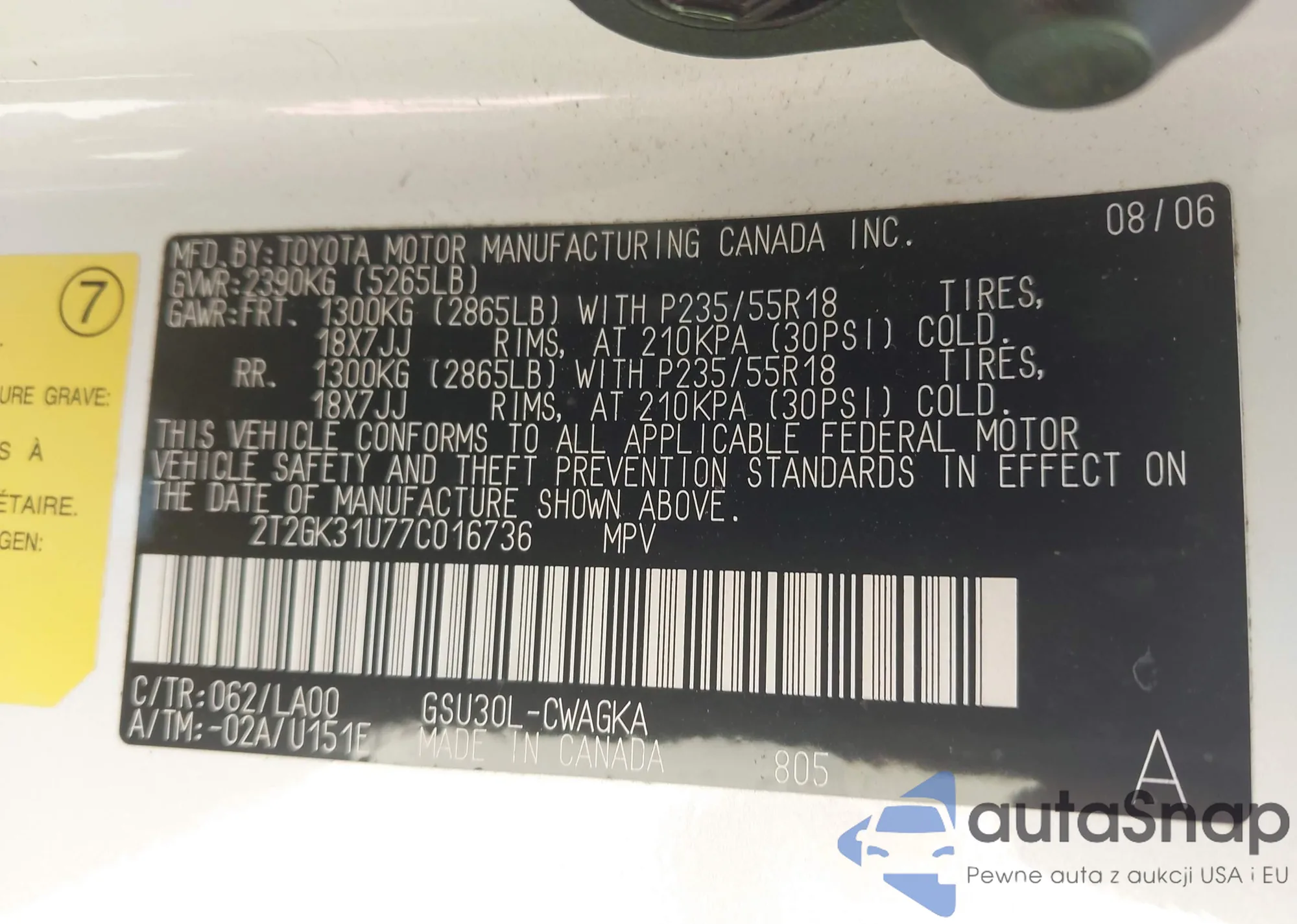 • VIN 2T2GK31U77C016736