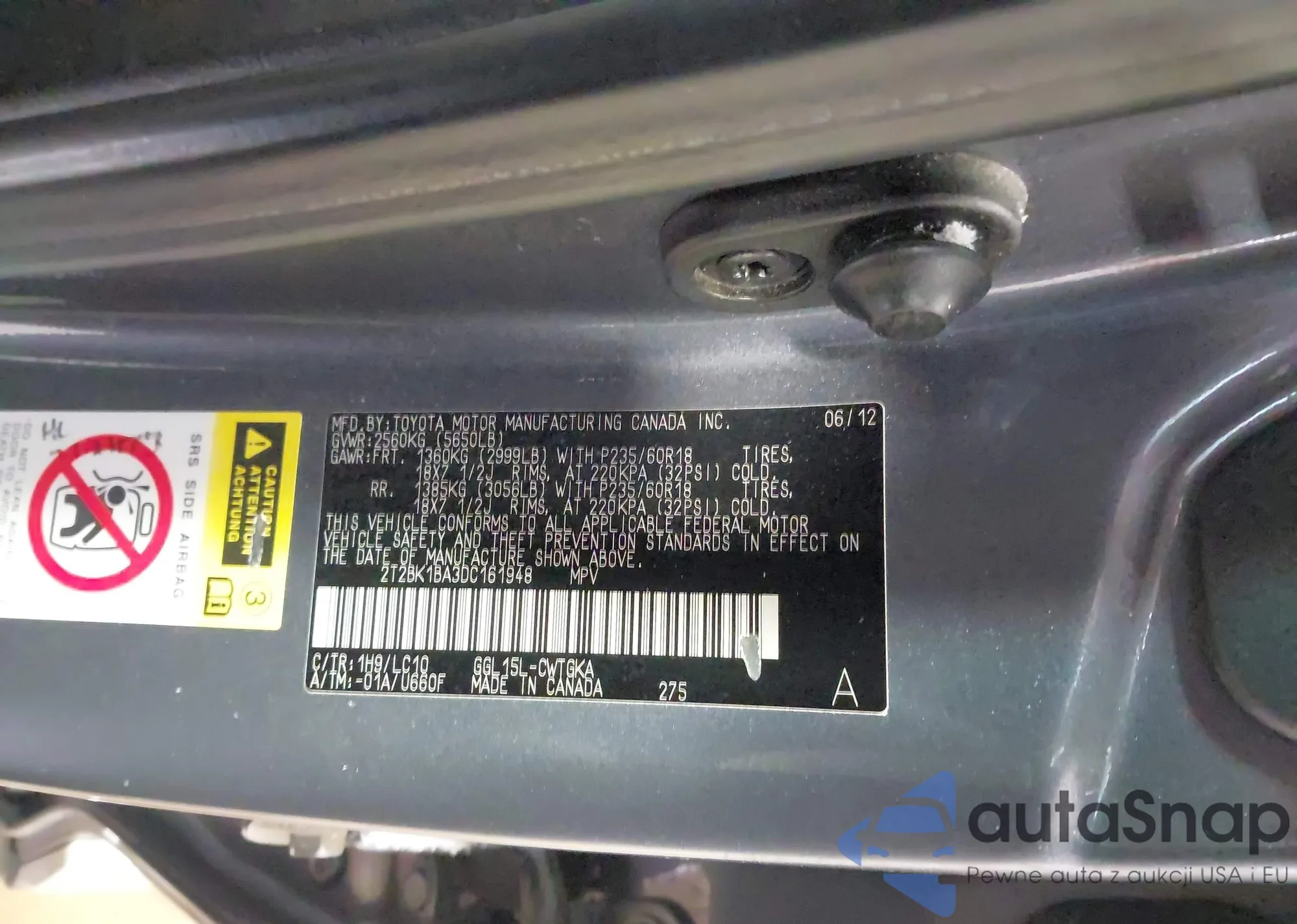 LOT: 44215981 VIN: 2T2BK1BA3DC161948