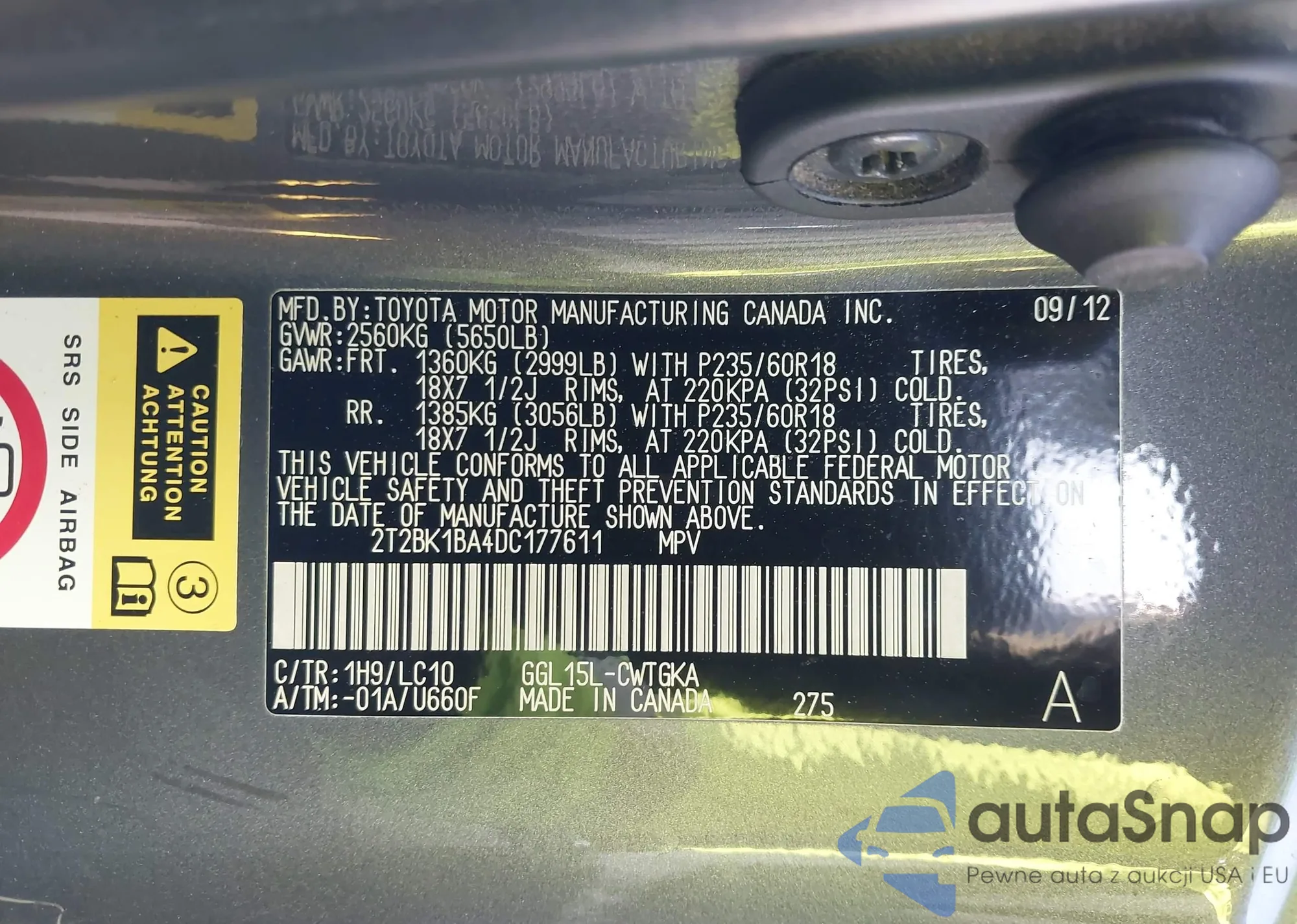 • VIN 2T2BK1BA4DC177611