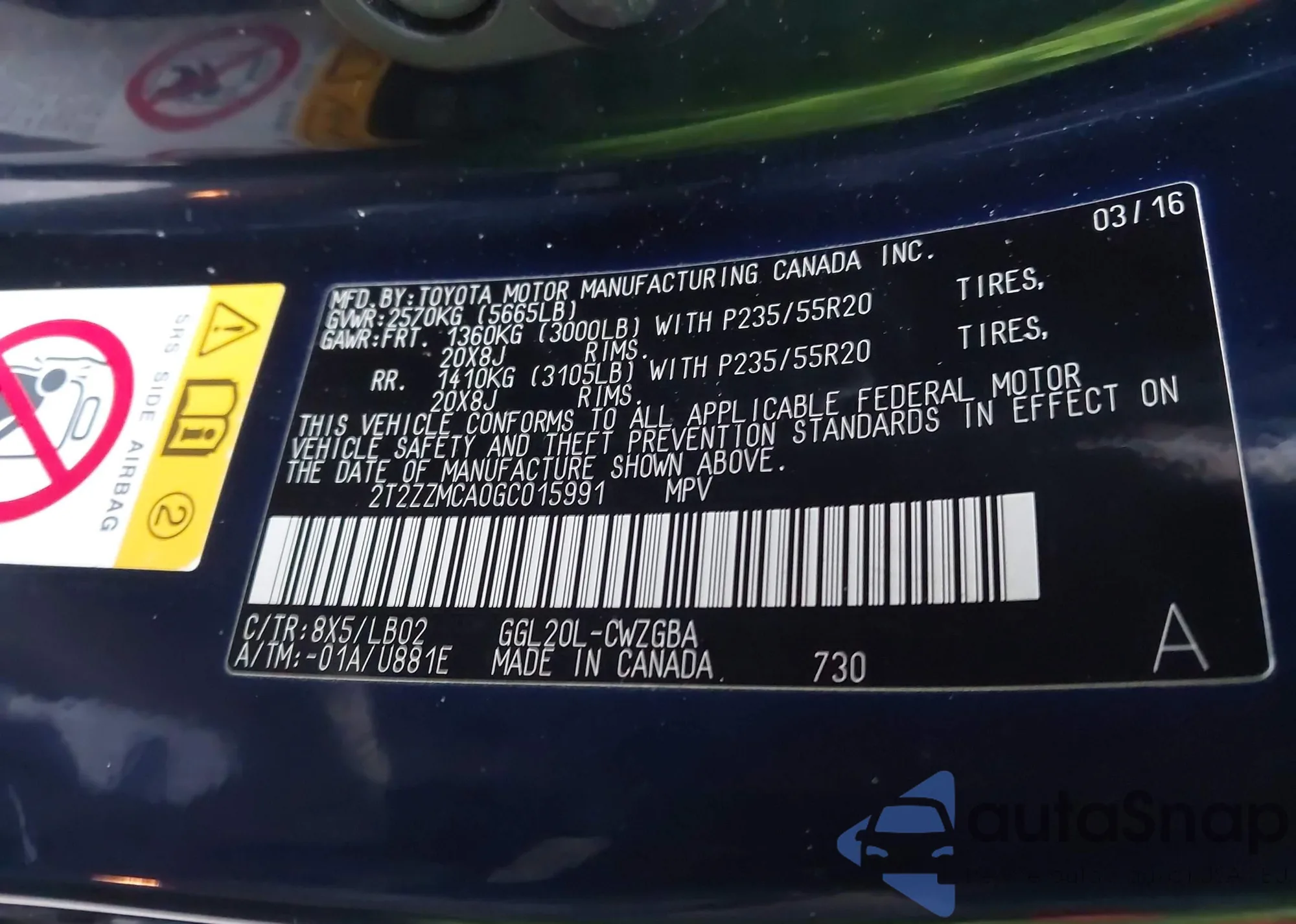 • VIN 2T2ZZMCA0GC015991