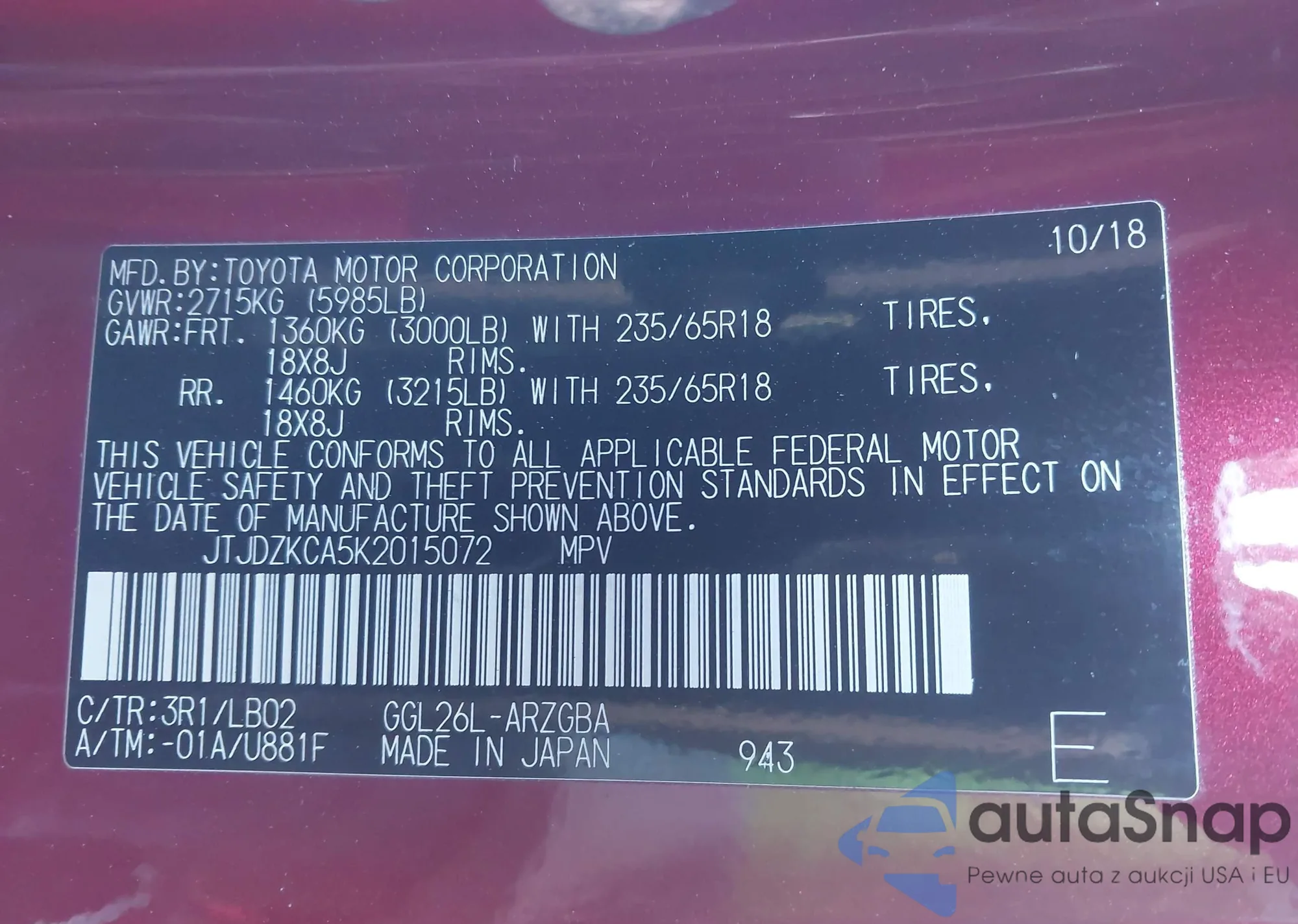 • VIN JTJDZKCA5K2015072
