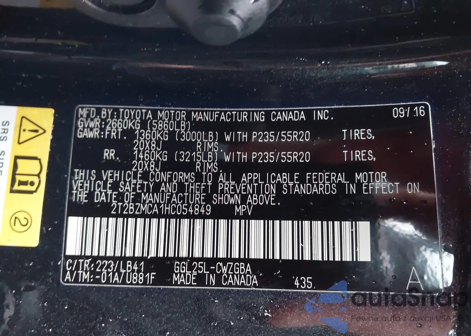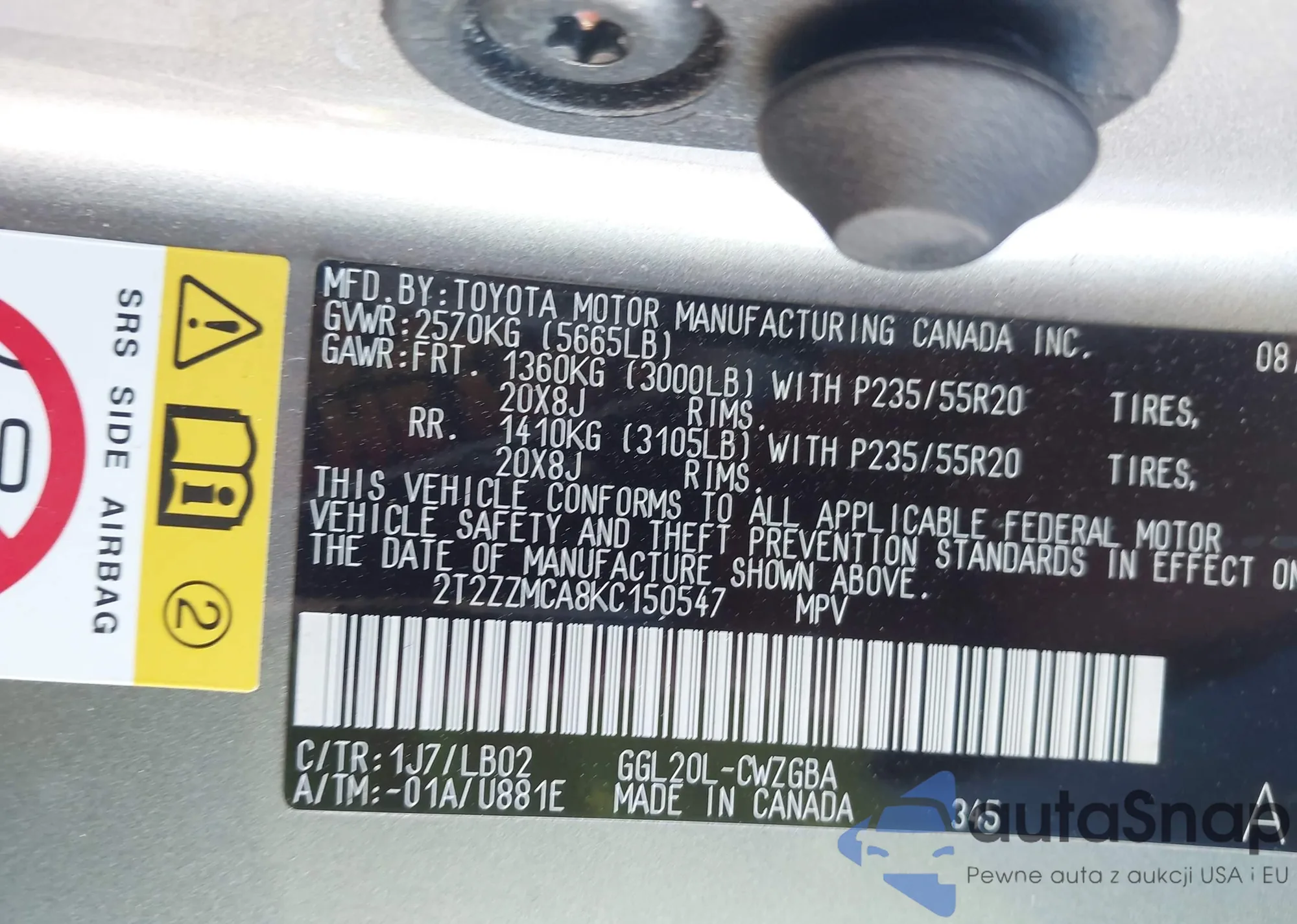 • VIN 2T2ZZMCA8KC150547
