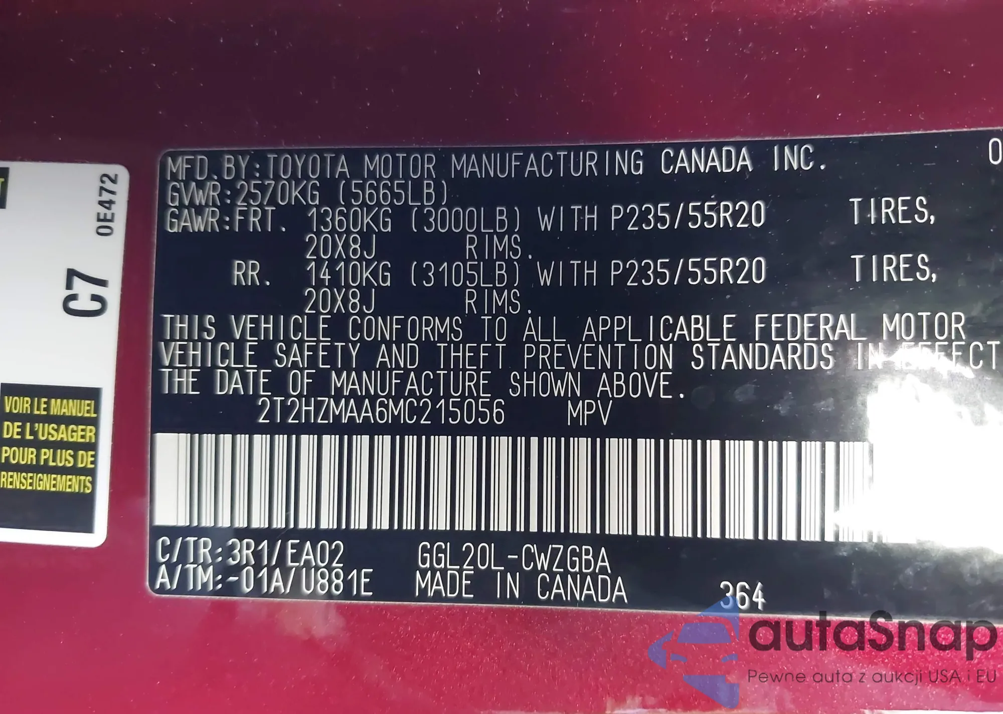 • VIN 2T2HZMAA6MC215056