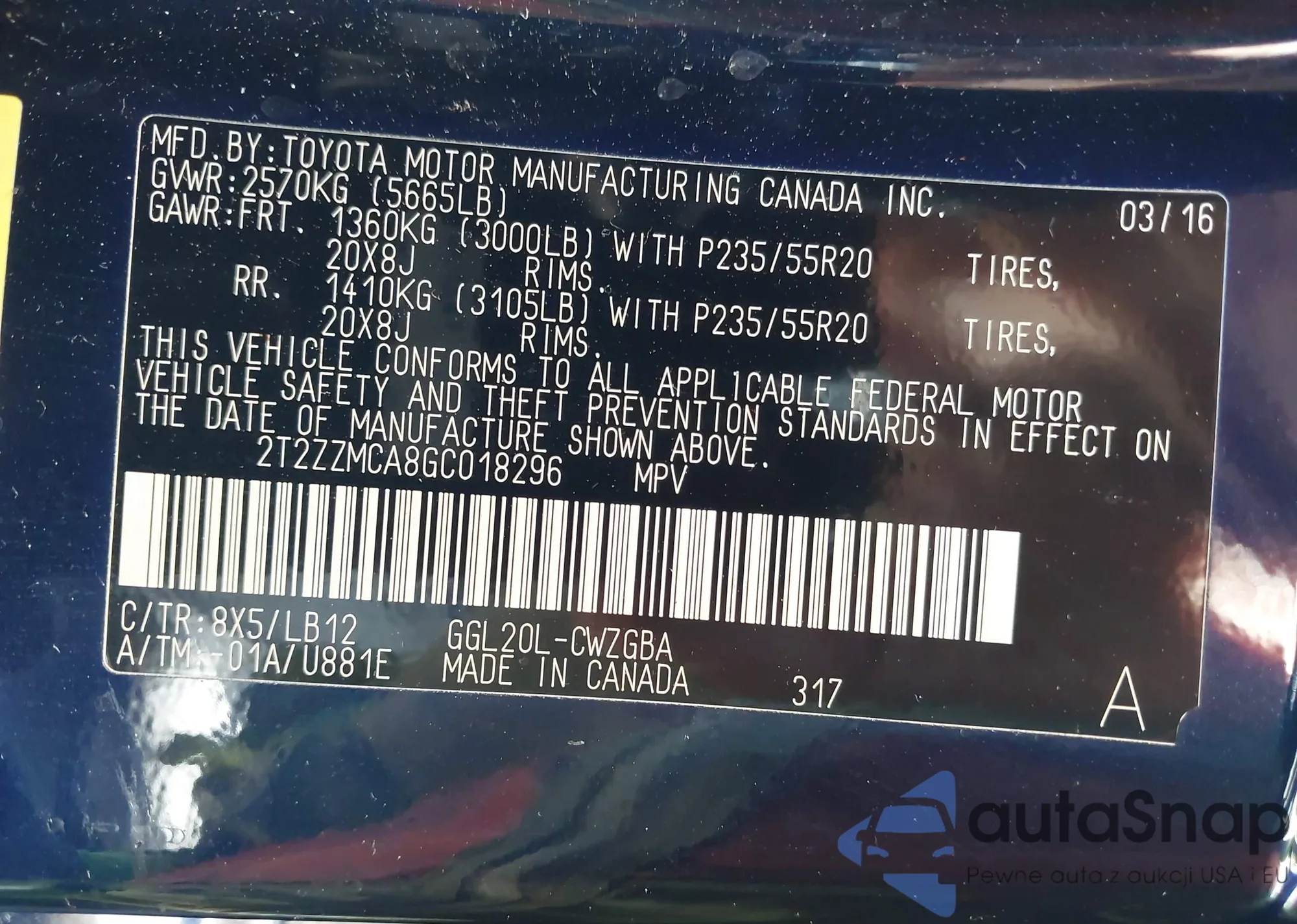 • VIN 2T2ZZMCA8GC018296