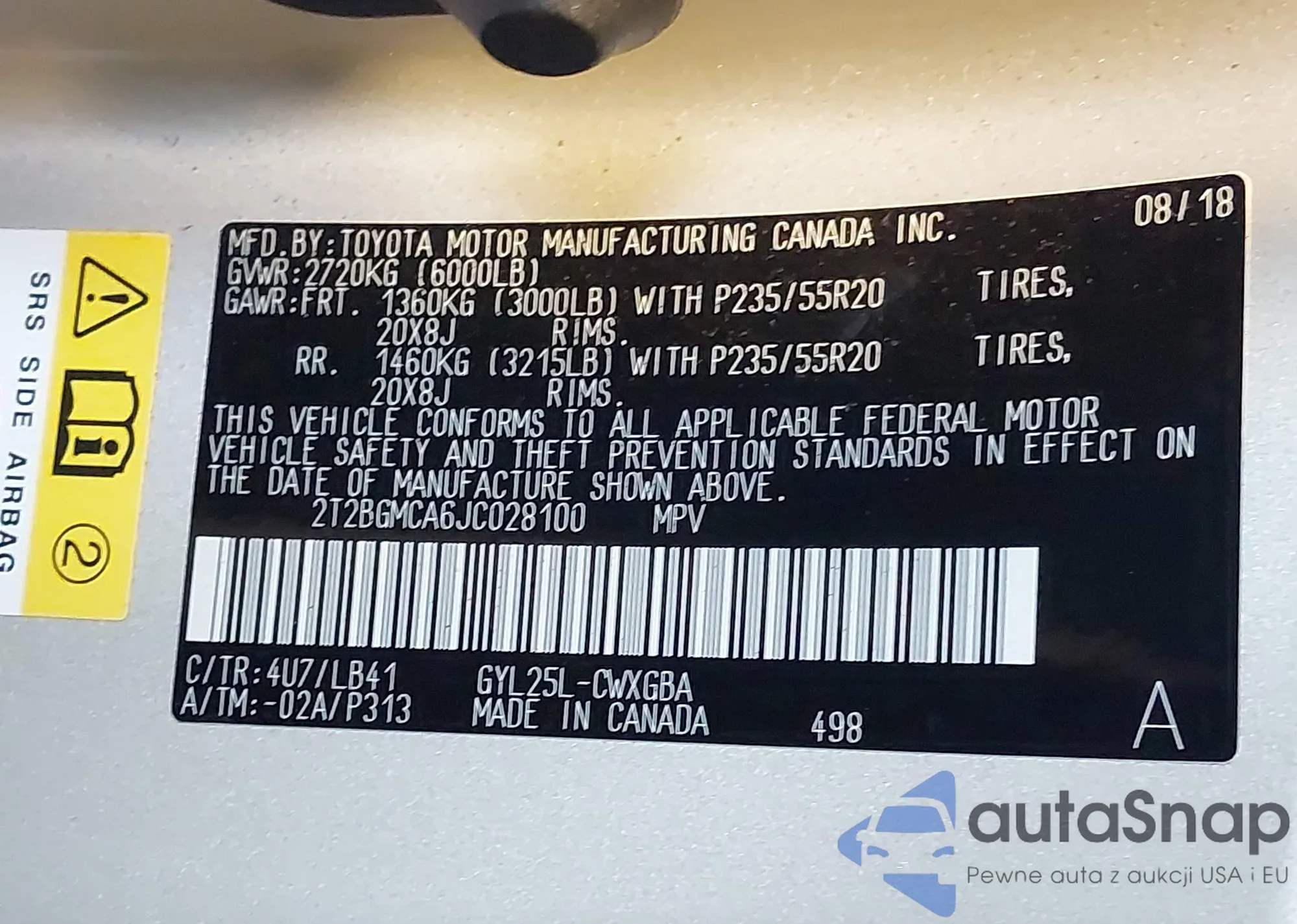 • VIN 2T2BGMCA6JC028100