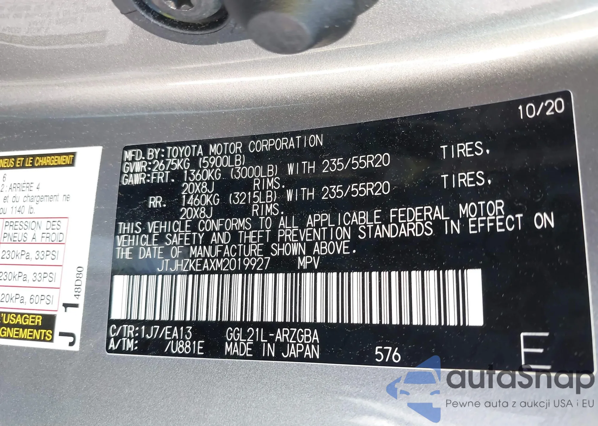 LOT: 44317133 VIN: JTJHZKEAXM2019927