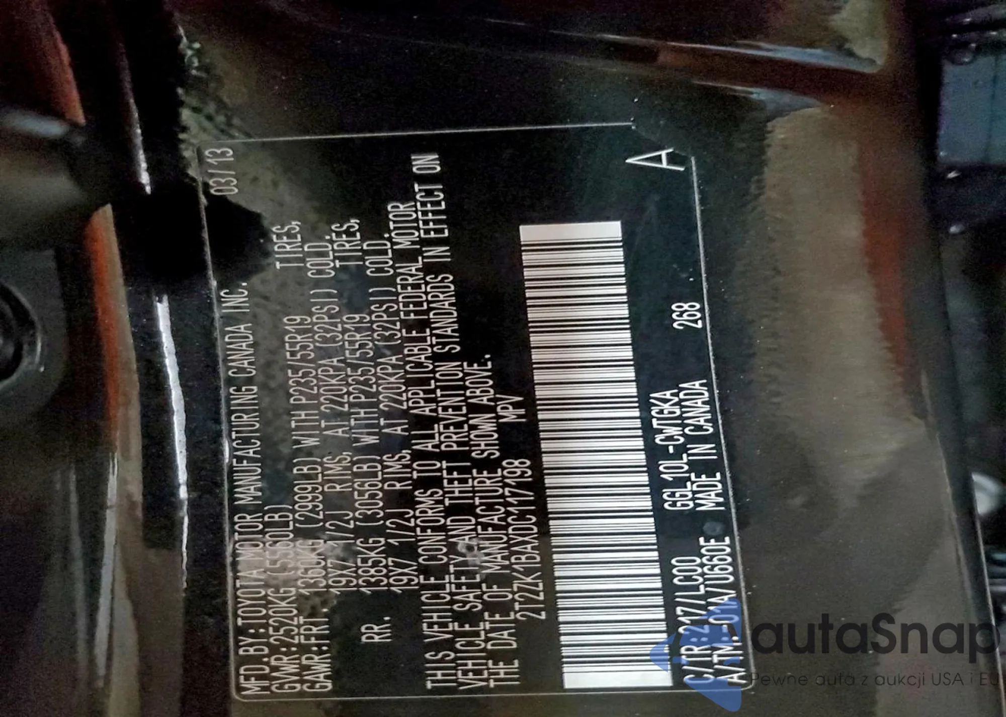 • VIN 2T2ZK1BAXDC117198