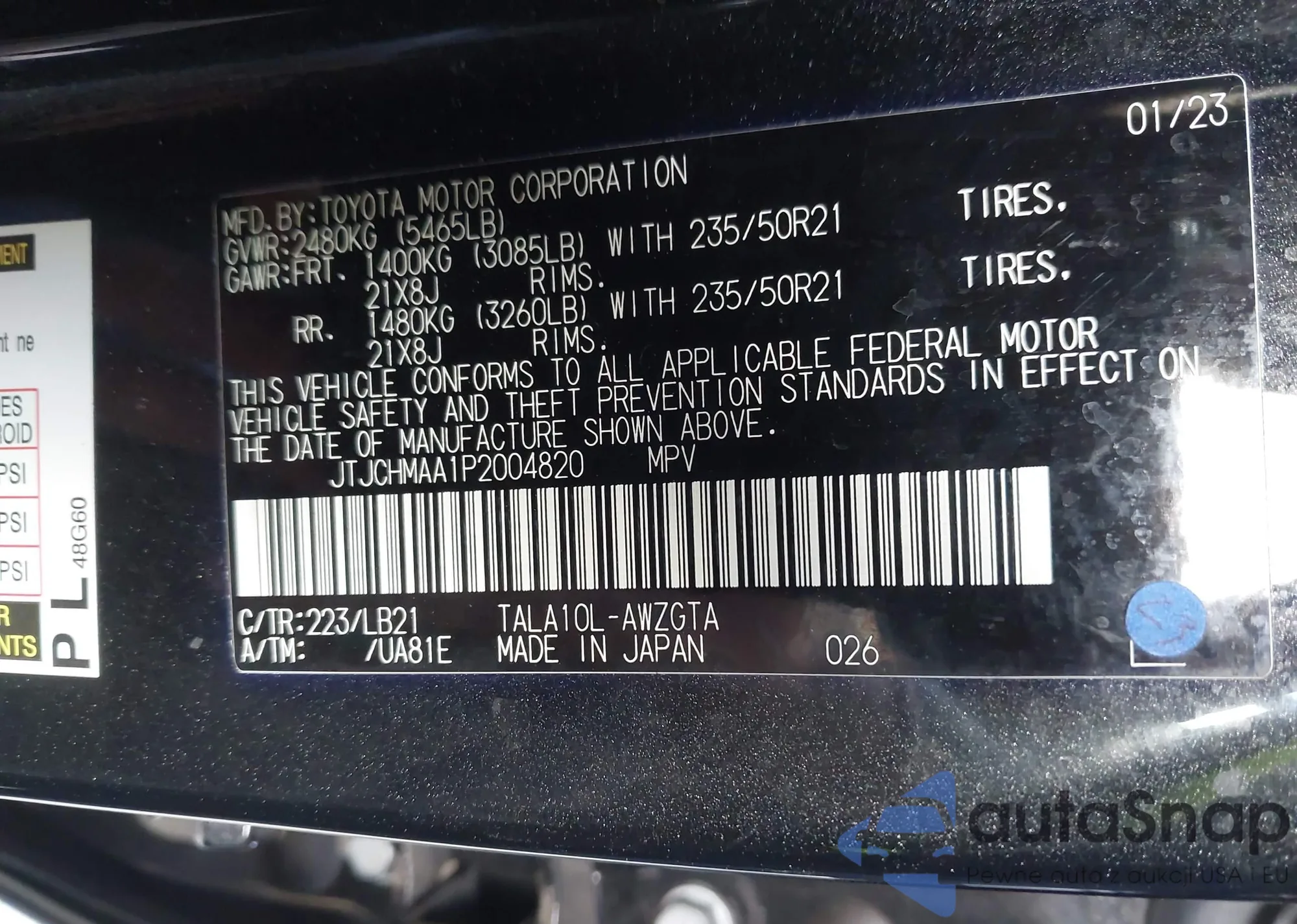 • VIN JTJCHMAA1P2004820