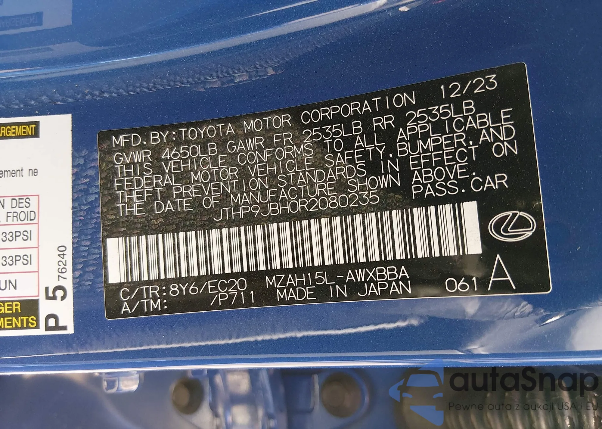 • VIN JTHP9JBH0R2080235