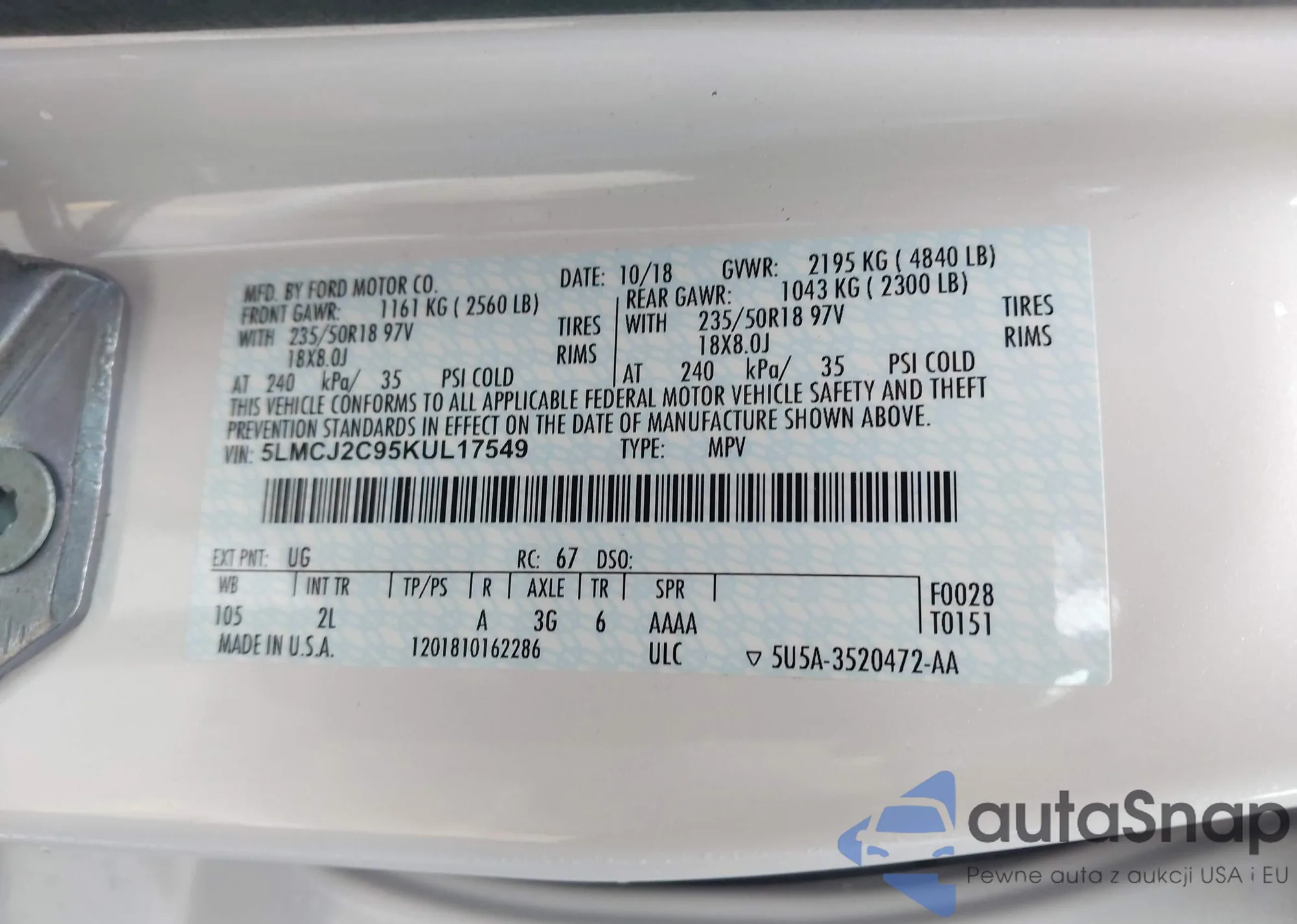 • VIN 5LMCJ1C97KUL46111