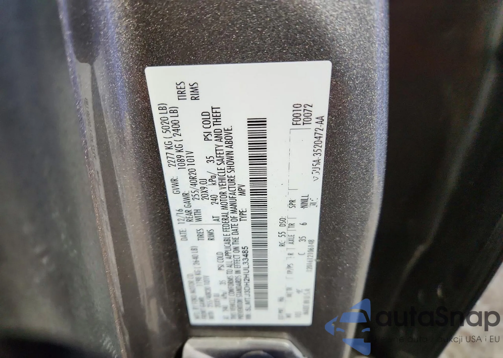 • VIN 5LMTJ3DH2HUL33485