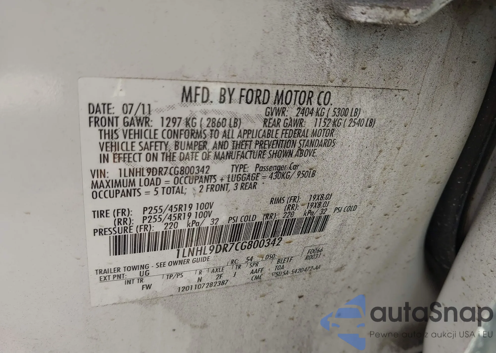 • VIN 1LNHL9DR7CG800342