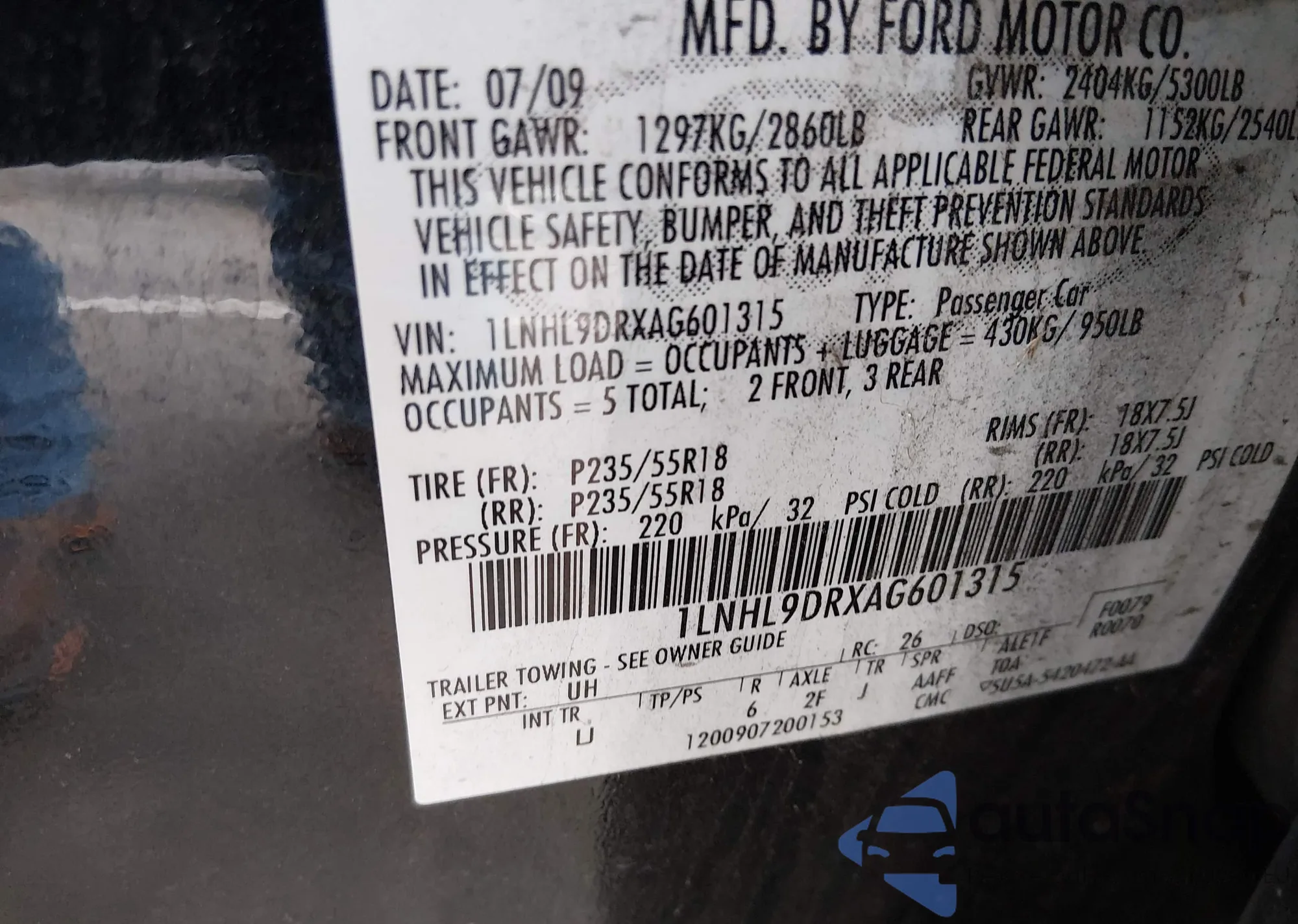 • VIN 1LNHL9DRXAG601315