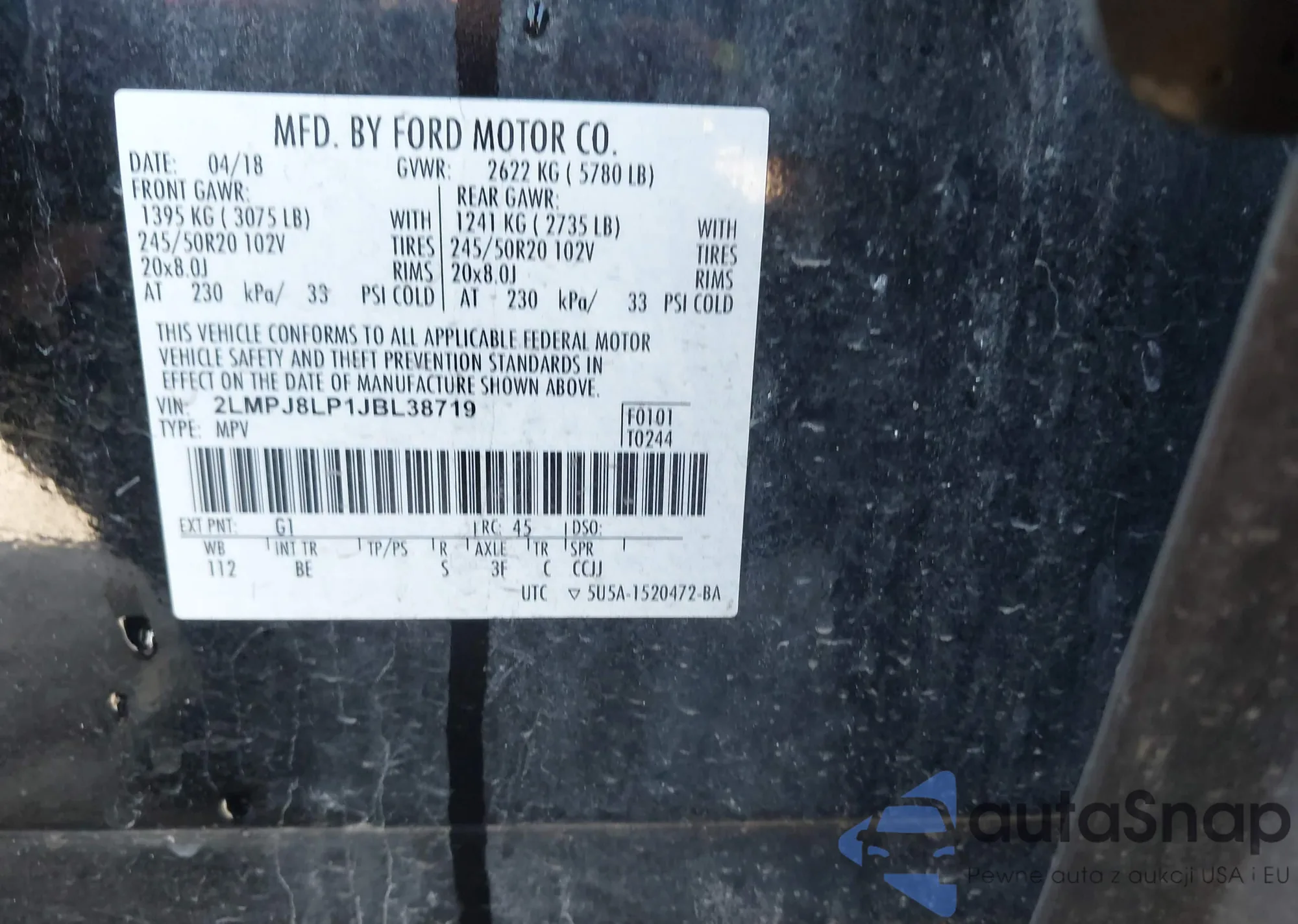 • VIN 2LMPJ8LP1JBL38719