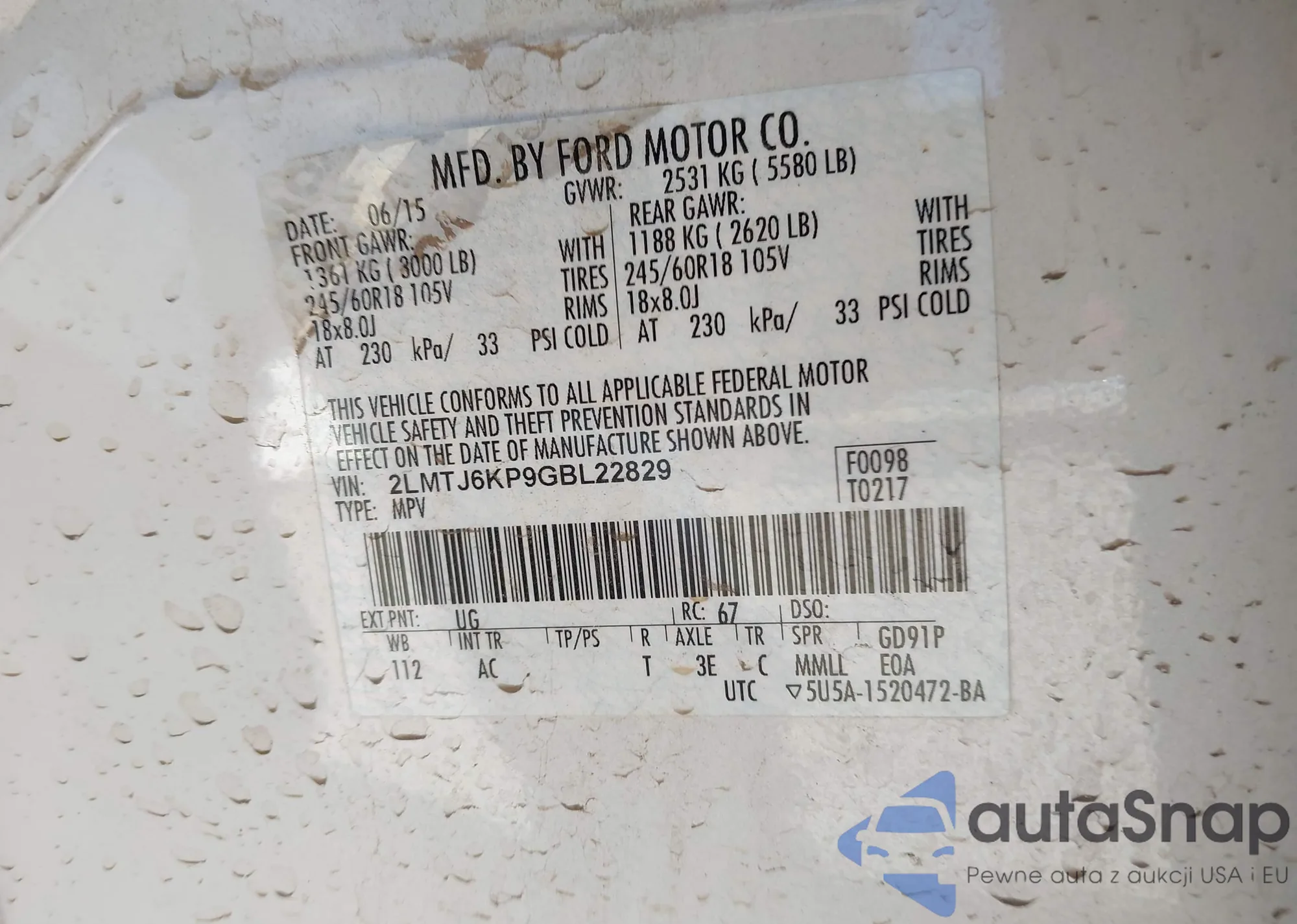LOT: 44431267 VIN: 2LMTJ6KP9GBL22829