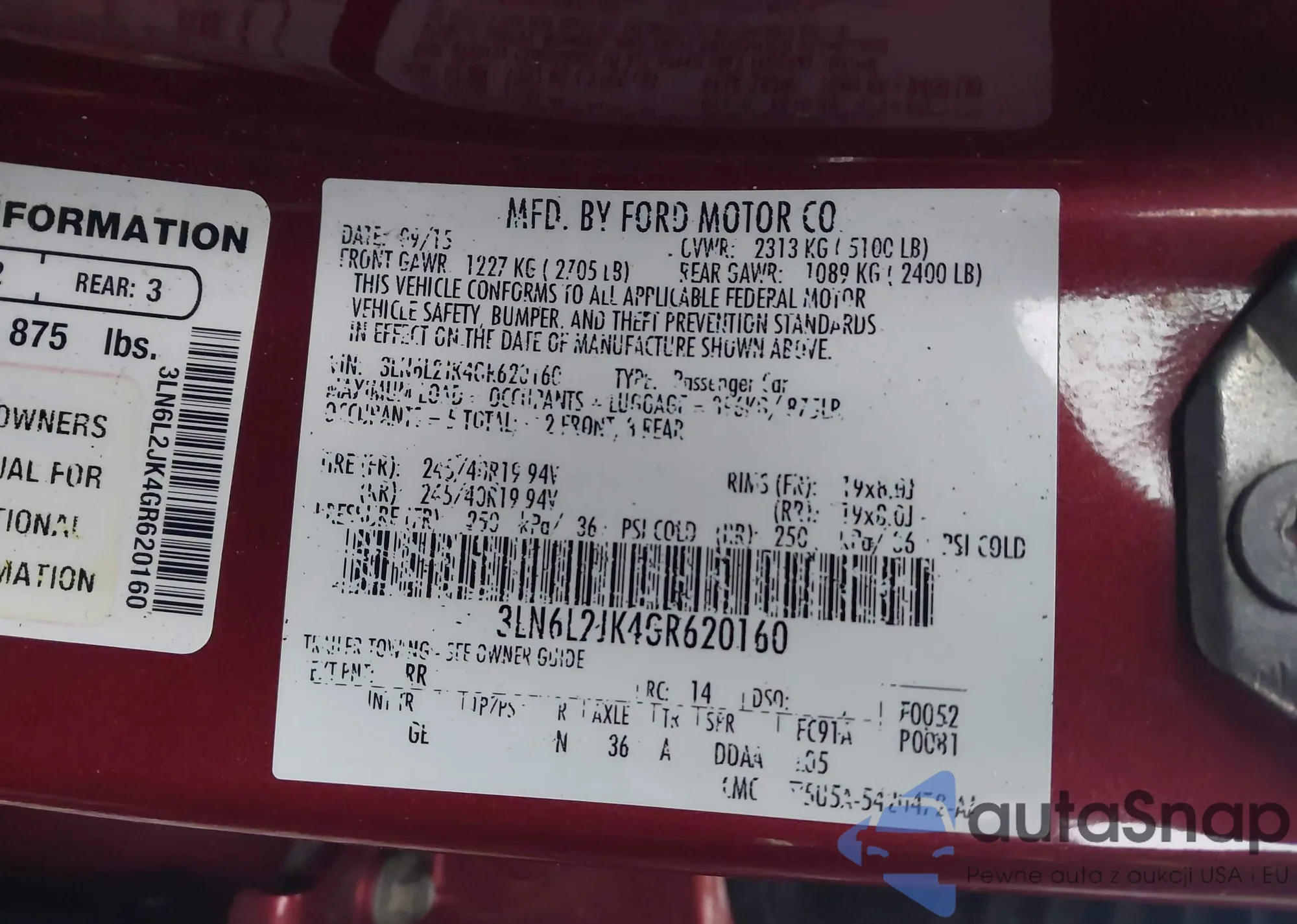 LOT: 43799727 VIN: 3LN6L2G90GR605451