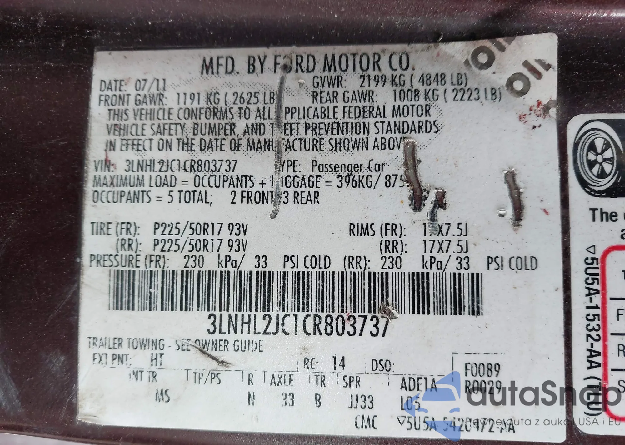• VIN 3LNHL2JC1CR803737
