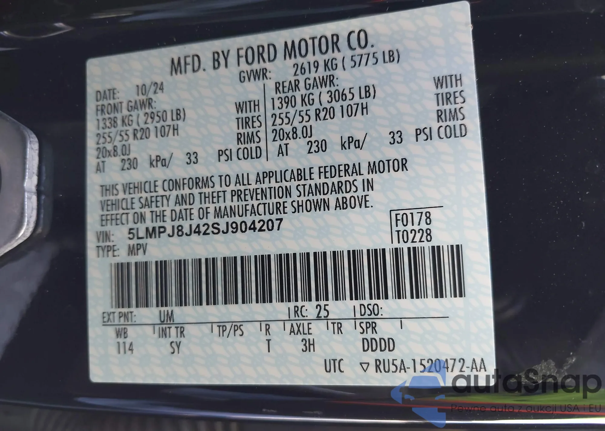 • VIN 5LMPJ8J42SJ904207