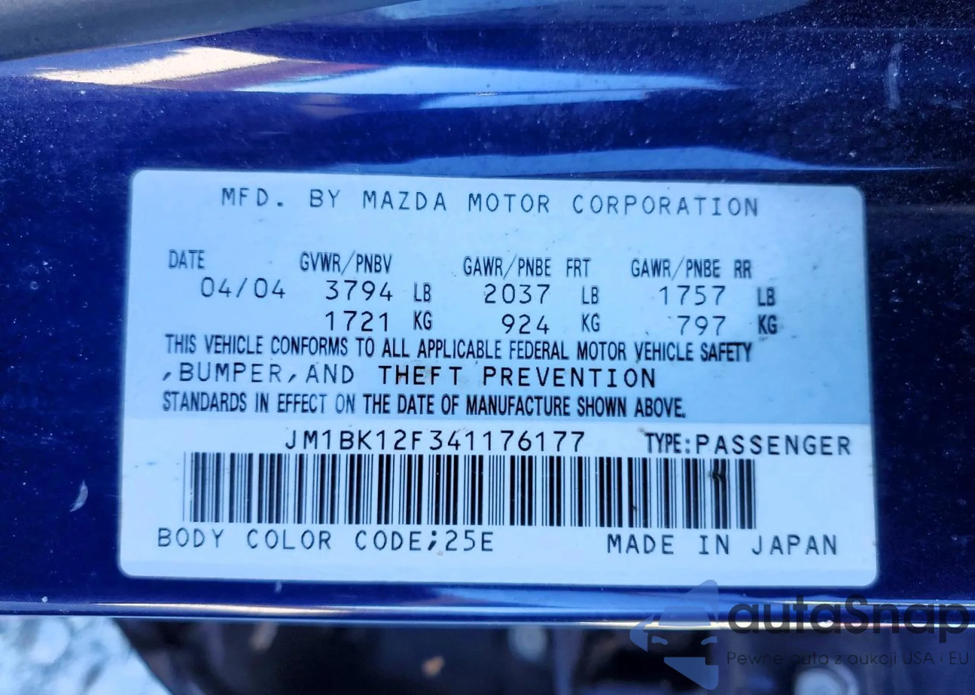 Kup Mazda 3 I (BK) z USA
