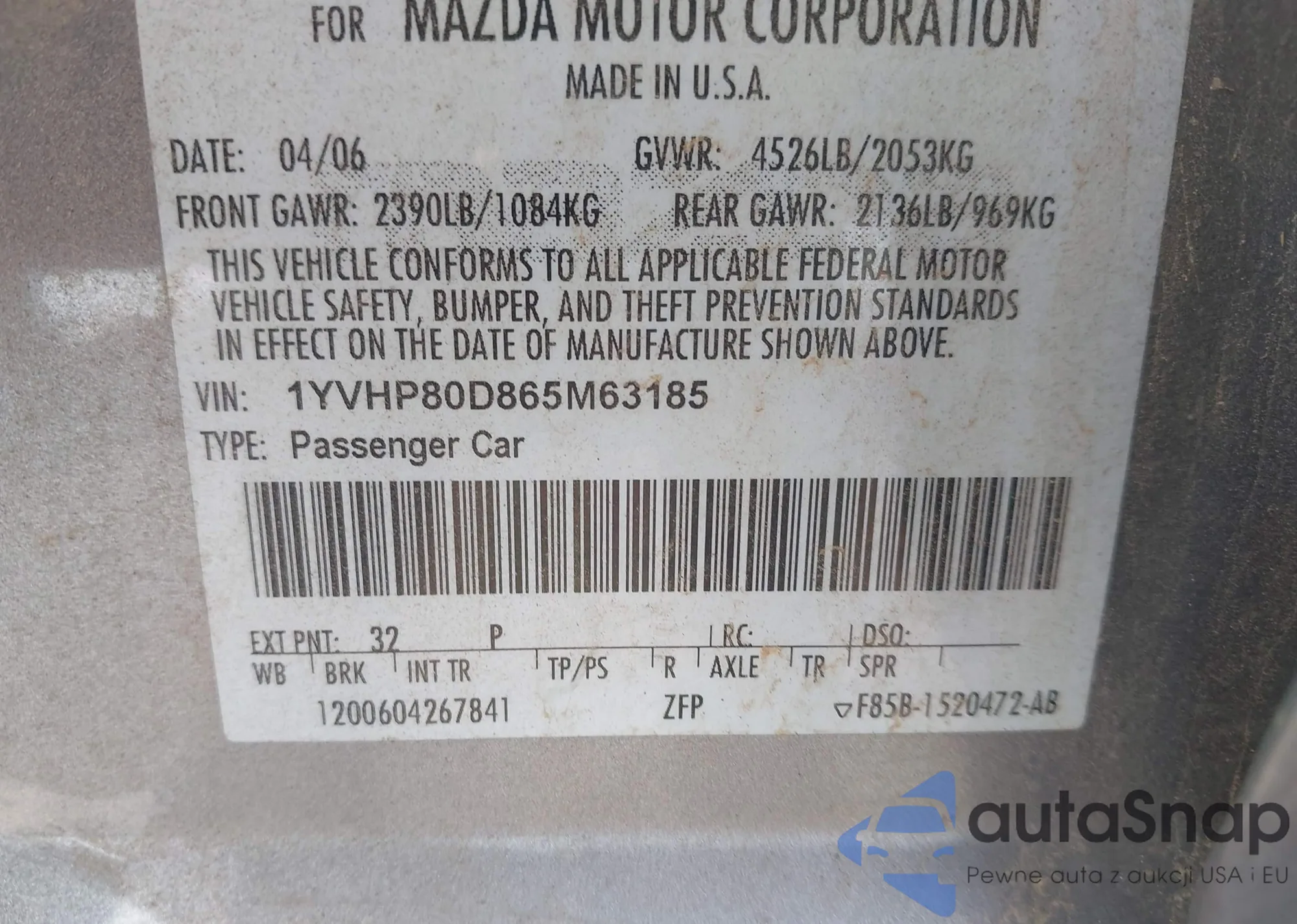 LOT: 44109085 VIN: 1YVHP84C265M65743